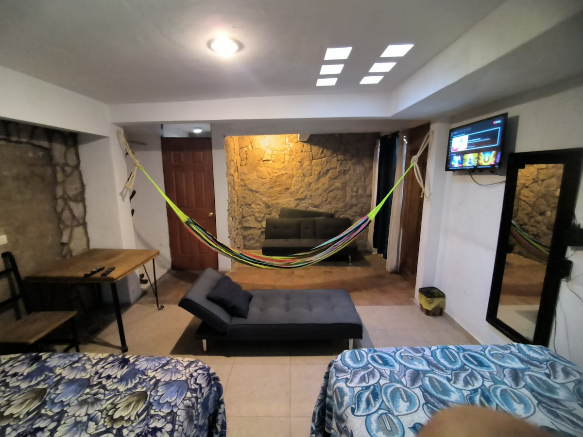 Dom z DUŻYM apartamentem dla dużych rodzin, łatwy dostęp do wszystkiego. Blisko wszystkiego i Paseo Altozano. Wszystkie udogodnienia. 3 pokoje: każdy z pełną łazienką i klimatyzacją. Salon, telewizor z kanałami streamingowymi, jadalnia, kuchnia, bar i garaż na 1 samochód. Bardzo wygodne dla 6 osób (MAKS. 8 osób w przypadku pobytów trwających co najmniej 2 dni). Dom z dala od domu! DODATKI: - Pralka i suszarka X 400 MXN/25 USD za pobyt - Możliwość wynajęcia apartamentu na niższym piętrze dla 4 dodatkowych osób - Możliwość wynajęcia pokoju imprezowego dla 30 osób