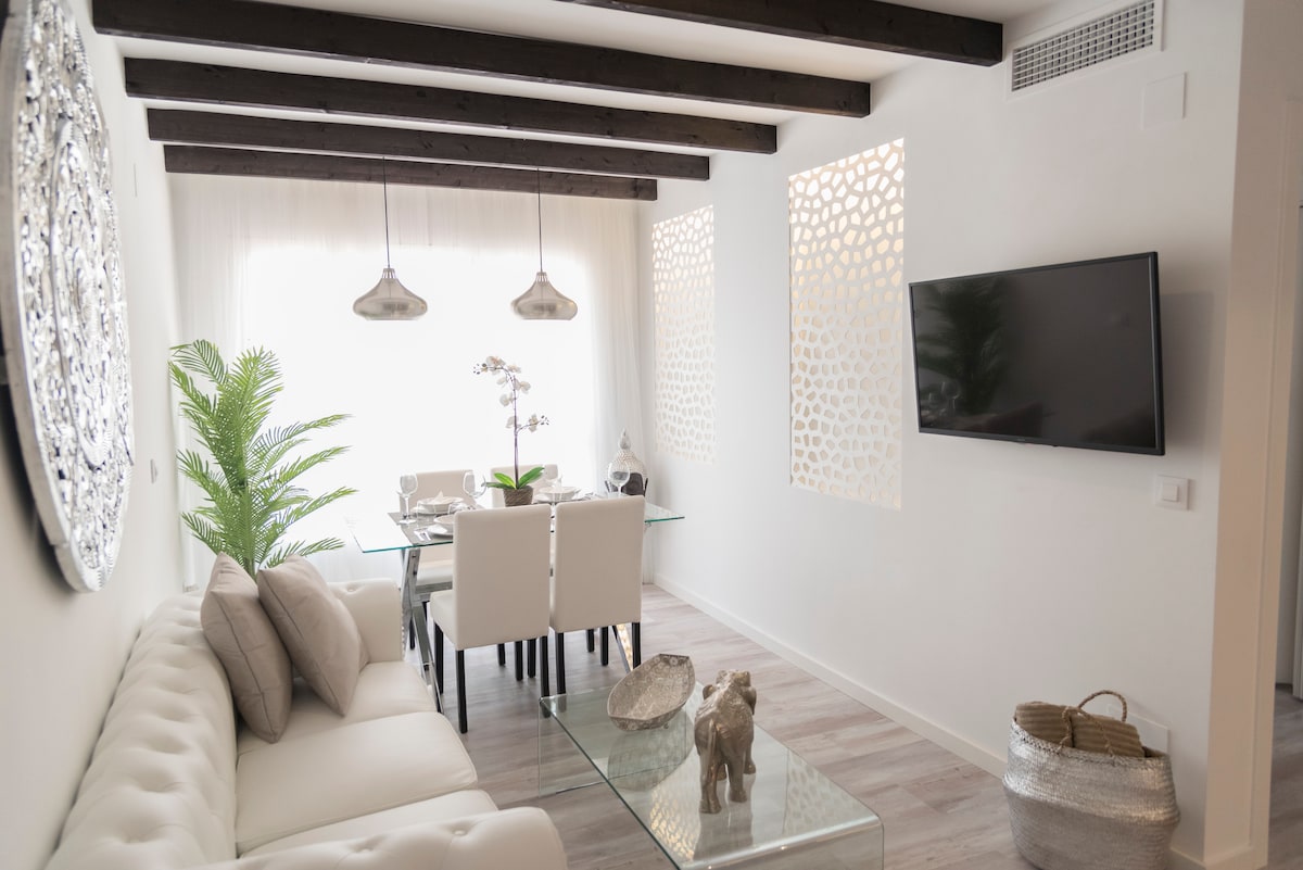 Wspaniały apartament całkowicie odnowiony, wyposażony we wszystkie udogodnienia i najwyższe cechy. Położony w samym sercu historycznego centrum, Calle Granados, 30 metrów od słynnego Plaza de Uncibay. Możesz spacerować, zarówno na zwiedzanie miasta, jak i cieszyć się plażą. Ciche i dostępne. 55-calowy telewizor SmartTV, bardzo ciche klimatyzatory, dźwiękoszczelne okna, łóżko typu king-size 160 x 200. Najwyższej jakości włoska sofa i wszystkie udogodnienia, których możesz potrzebować do wygodnego pobytu.