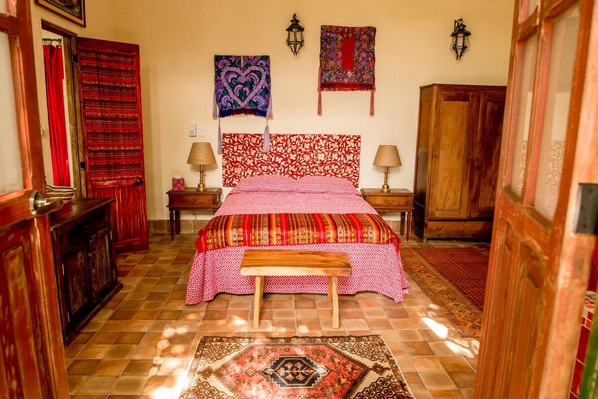 Przestronny apartament w domu kolonialnym, idealny dla 2 osób. Znajduje się na wschód od centrum Méridy, w pobliżu dzielnicy ChemBech, zaledwie 20 minut spacerem od głównego placu. Przyjmuje podróżnych szukających spokoju i introspekcji. Wyjątkowy styl i styl, z luksusowymi wykończeniami, gwarantuje prywatność z dala od zgiełku śródmieścia. Mieszkanie jest całkowicie prywatne, na niższym piętrze. Posiada w pełni wyposażoną kuchnię i salon, basen, ogród, taras, sypialnię z łóżkiem typu king i marmurową łazienką.