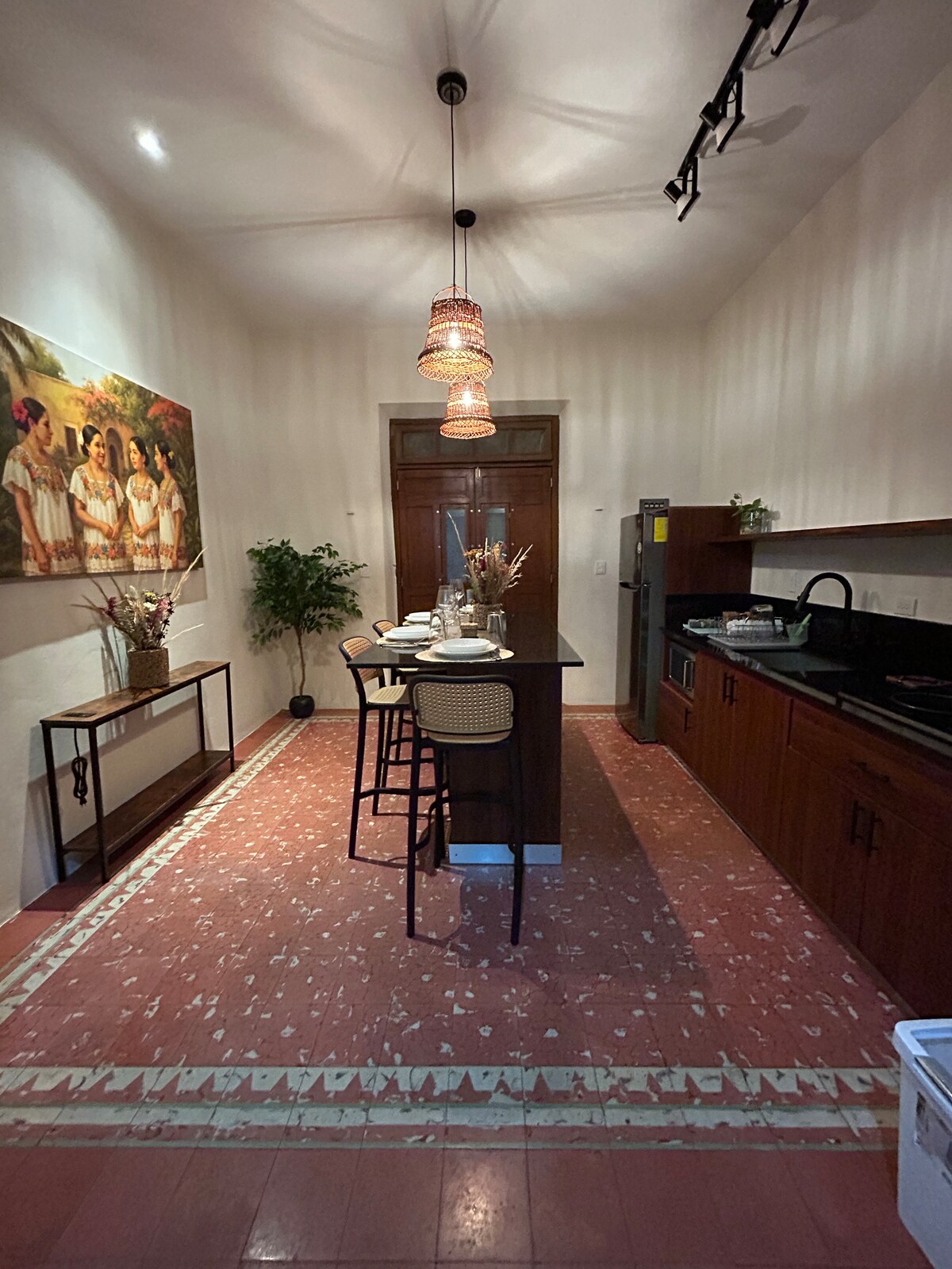 Spacious apartment inside colonial house, perfect for 2. Located east of downtown Mérida, near the ChemBech neighborhood, only a 20-minute walk from the main square. It welcomes travelers seeking calm and introspection. Unique in style and design, with luxury finishes, it guarantees privacy away from the hustle downtown. The apartment is completely private, on the lower level. It has a fully equipped kitchen and living room, a pool, a garden, a terrace, one king bedroom with a marble bathroom.