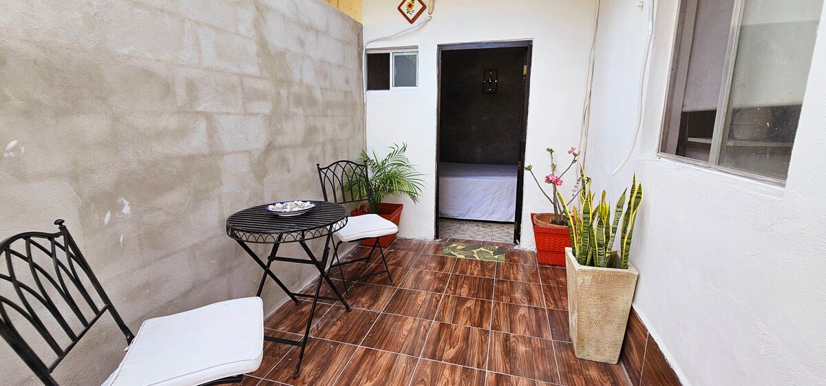Ciesz się prostotą tego cichego i centralnego miejsca, naprzeciwko nowego Gran Parque de la Plancha, możesz dotrzeć do pomnika konkwistadorów i Paseo de Montejo w 10 minut spacerem. W pobliżu znajdują się supermarkety (Oxxo, Extra i Walmart), restauracje, księgarnie, muzea, parki, bary, kawiarnie, tradycyjny rynek Santa Ana, pralnie, strefa bankowa do wymiany walut itp.