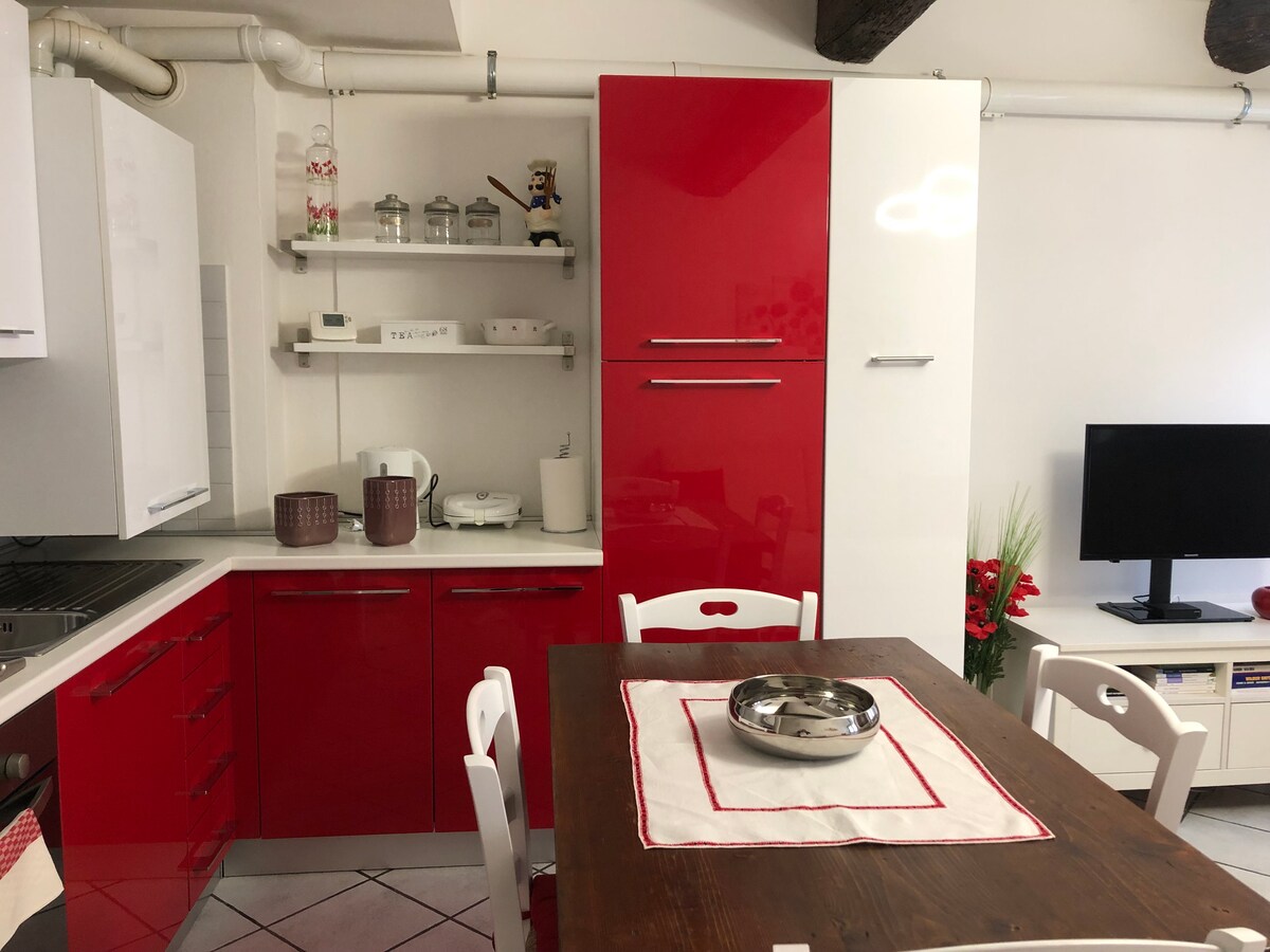 Niedawno odnowiony apartament typu studio, położony na głównym placu Budrio, z widokiem na dwa balkony. Znajduje się 100 m od przystanku autobusowego, 200 m od stacji kolejowej i 350 m od szpitala. Ogrzewanie podłogowe, kuchnia z tradycyjnym piekarnikiem, kuchenka mikrofalowa, ekspres do kawy, lodówka i zamrażarka. Pralka, suszarka i suszarnia do bielizny. Łóżko francuskie. Smart TV i bezpłatne Wi-Fi. Duży prysznic z chromoterapią. Apartament znajduje się na drugim piętrze, bez windy.