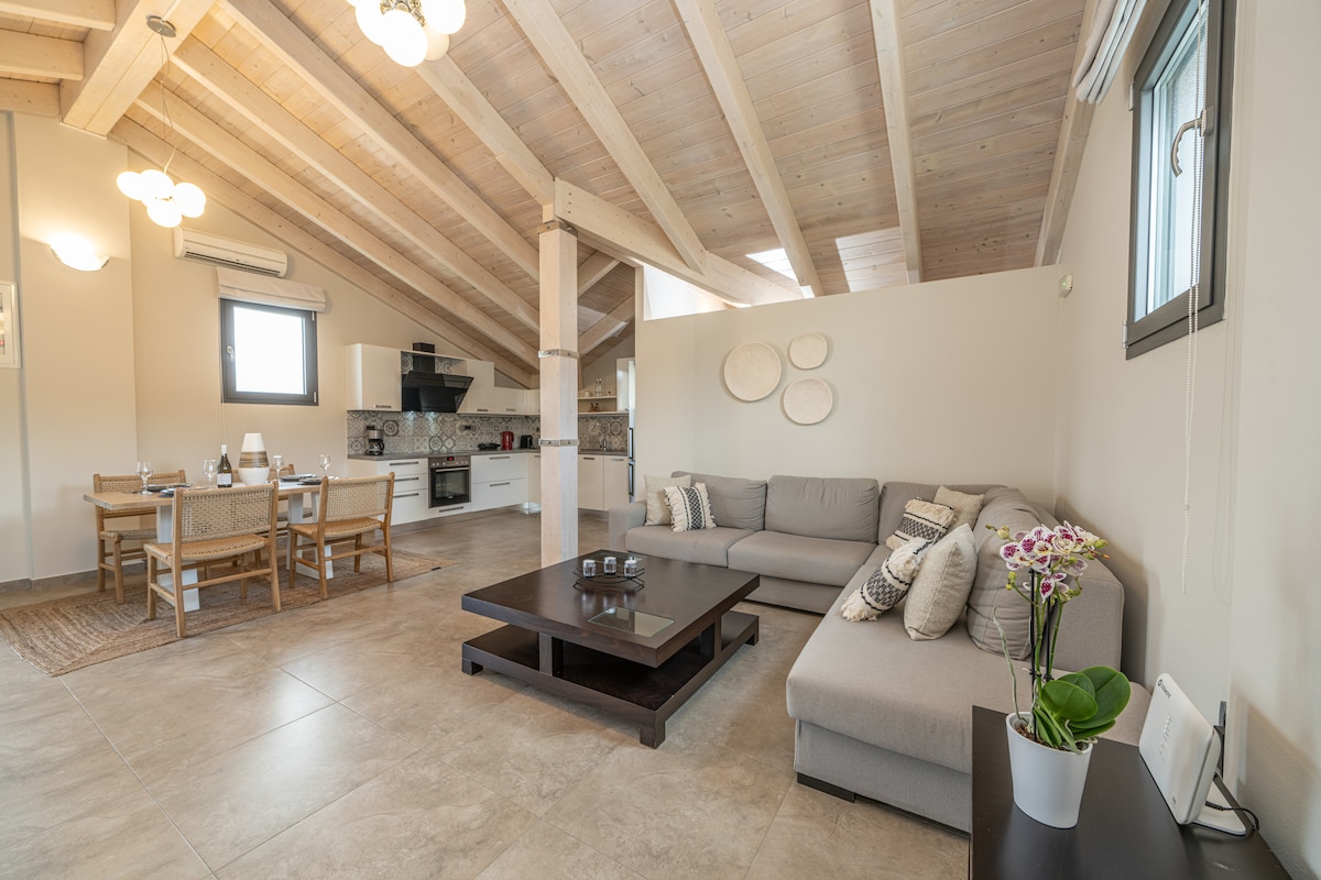 Libro D’oro is a luxurious penthouse occupying the entire top floor of a neoclassical building near Argostoli’s main square and port. It features 2 double bedrooms with en-suite bathrooms, Italian-design kitchen, vaulted wooden ceilings, and an open terrace with city views. Staying here is a romantic experience filled with elegance and charm.