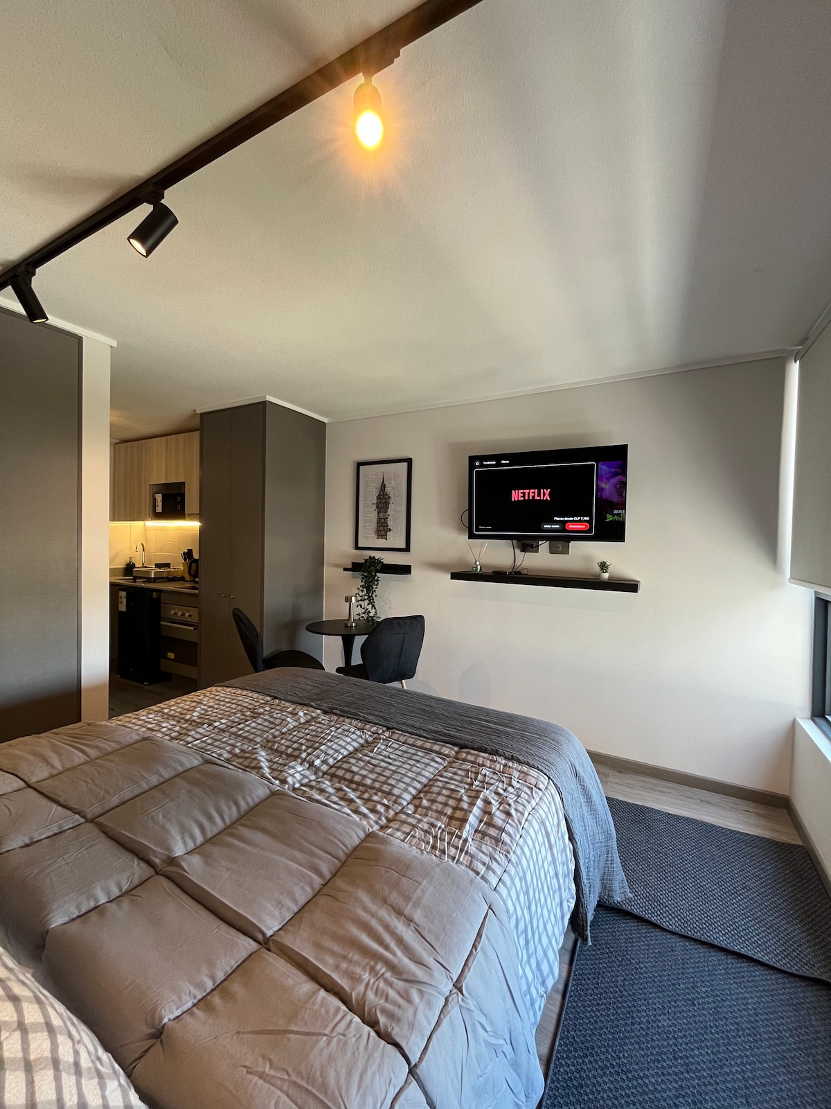 Nowoczesny apartament w Santiago Centro, minimalistyczny wystrój i zadbane części wspólne. Kilka kroków od Parque O'Higgins, Movistar Arena i historycznego Club Hípico. Bardzo blisko Fantasilandii i tylko 6 minut spacerem do stacji metra Rondizzoni (L2), co ułatwia połączenie z całym miastem. Apartament jest w pełni wyposażony, aby zapewnić komfortowy, praktyczny i przyjemny pobyt.