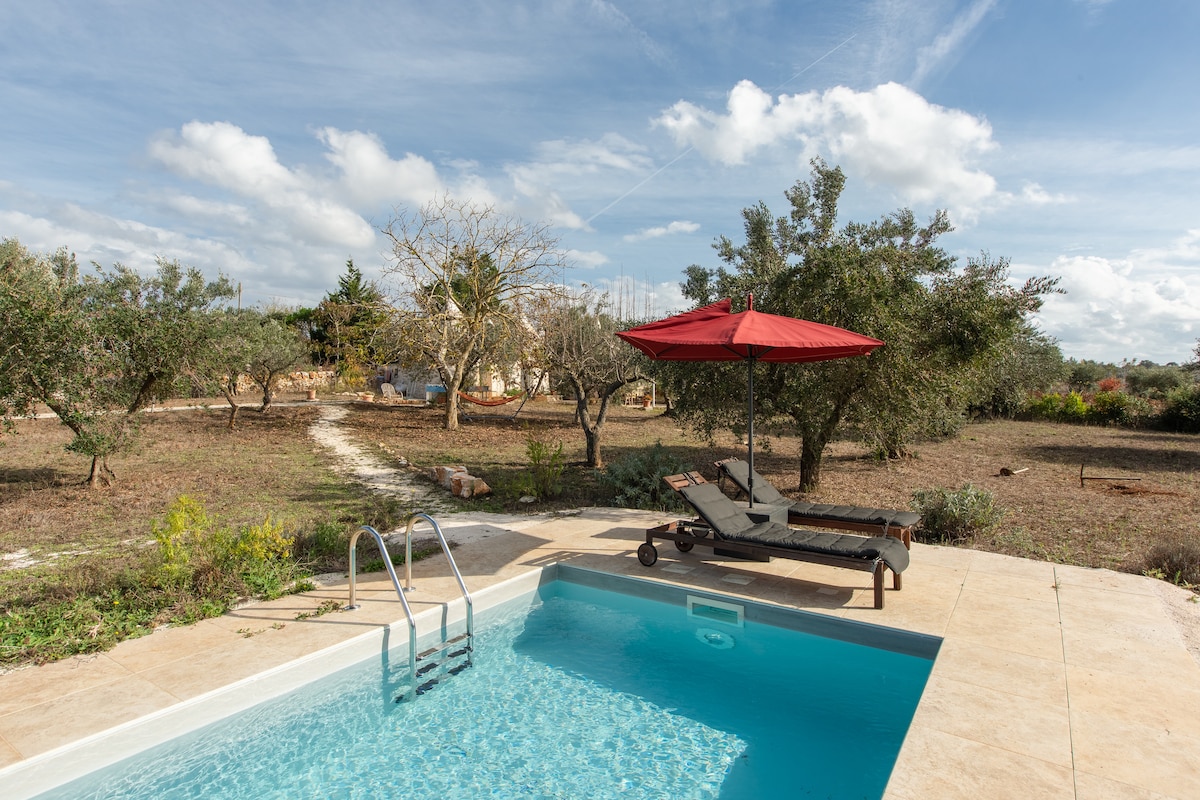 Trulli zanurzone w sercu Valle d'Itria. Wyposażone są w basen (wspólny) i jacuzzi. W budynku znajduje się sypialnia z łóżkiem małżeńskim, bardzo duży salon z przylegającą sofą, pełna łazienka i wyposażona kuchnia. Na zewnątrz znajduje się weranda z altanką, ogród, miejsce do grillowania i parking. W odległości kilku kilometrów znajdują się bardzo popularne miejsca (Ostuni, Cisternino, Alberobello, Locorotondo, Martina Franca, plaże Ostuni, Torre Canne i Monopoli)