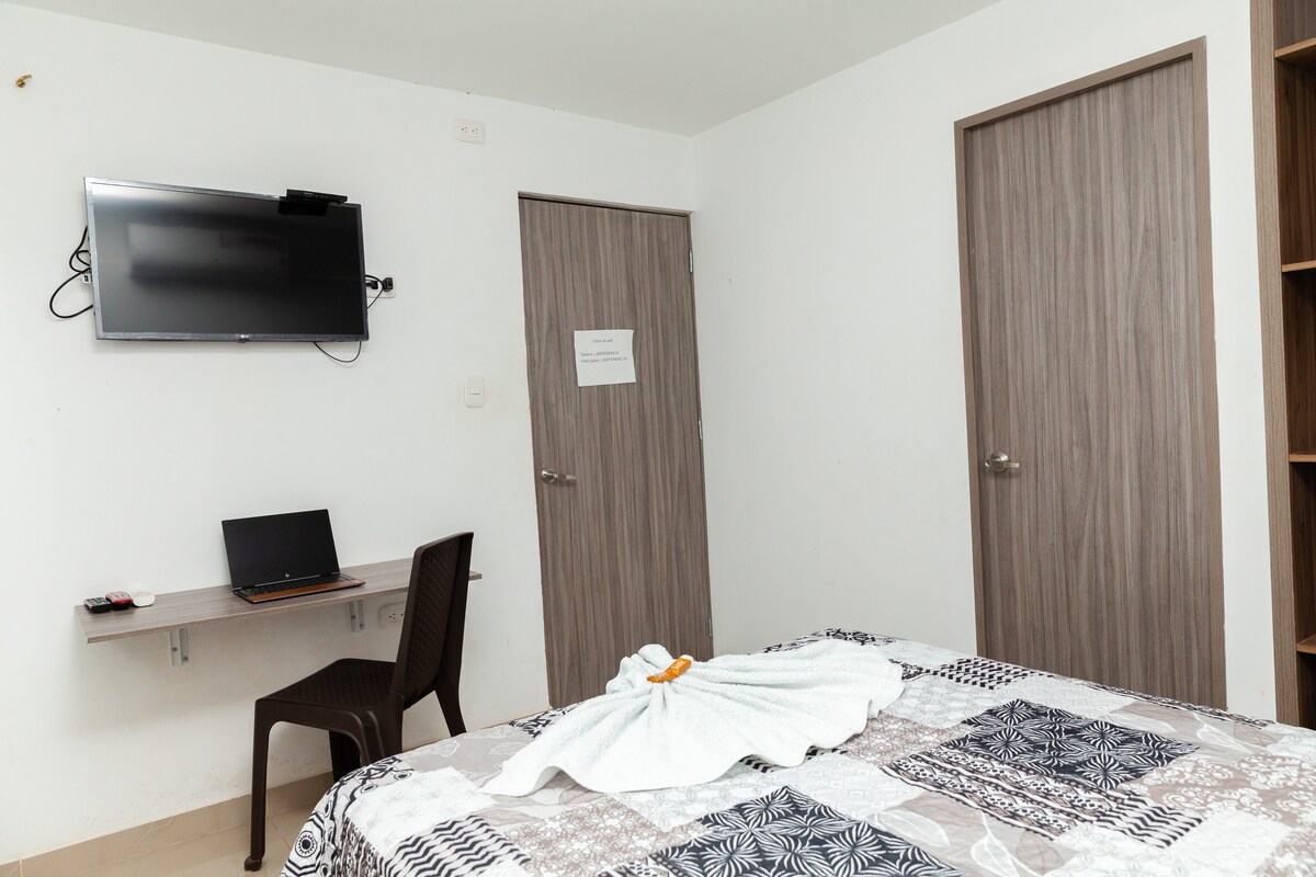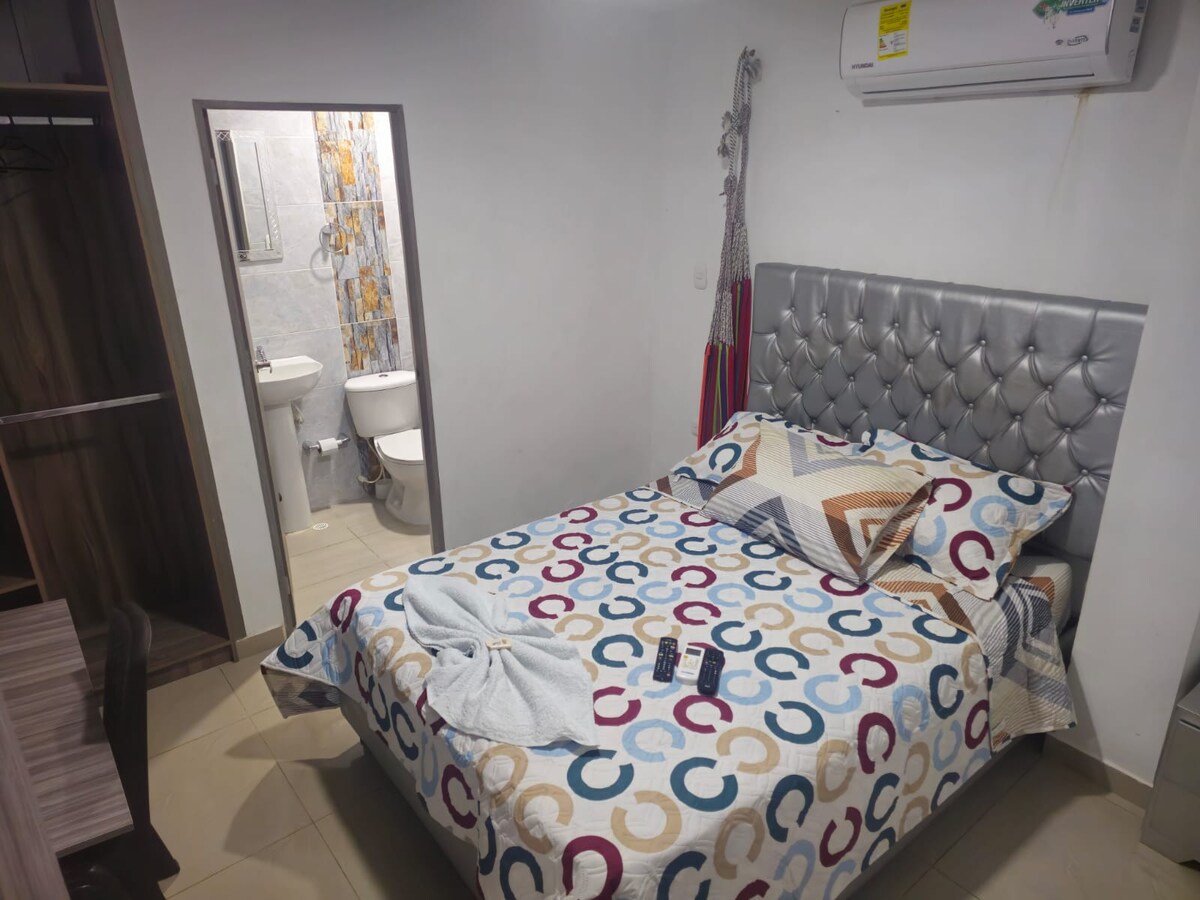 Wygodne i ciche mieszkanie w Valledupar, położone w Callejas Norte, zaledwie kilka kroków od rzeki Guatapurí i Uniwersytetu Andina. Idealne do relaksu, pracy lub zwiedzania miasta. Bezpieczny obszar z łatwym dostępem do transportu, sklepów i atrakcji.
