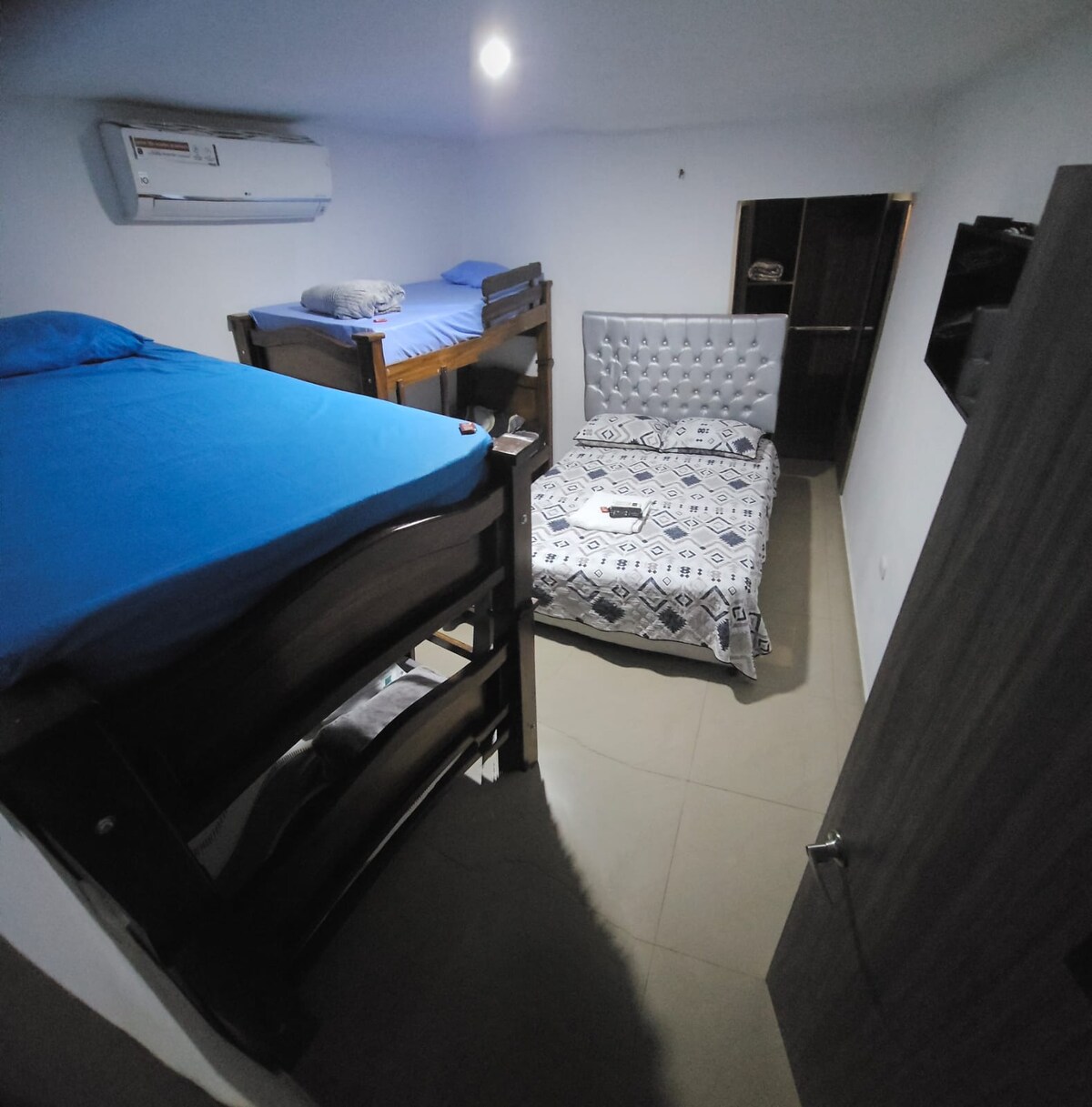 Przestronna i spokojna przestrzeń do odpoczynku lub pracy. Apartamento amoblado. Strategiczna lokalizacja, w pobliżu terminalu transportowego, lotniska, centrów handlowych i atrakcji turystycznych. Maksymalnie 7 gości. 2 klimatyzowane pokoje( dla dwóch osób ). 1 pokój z wentylatorem sufitowym ( dla dwóch osób) 1 toaleta Kuchnia ze sztućcami, lodówką, pralnią, balkonem i całodobową ochroną.