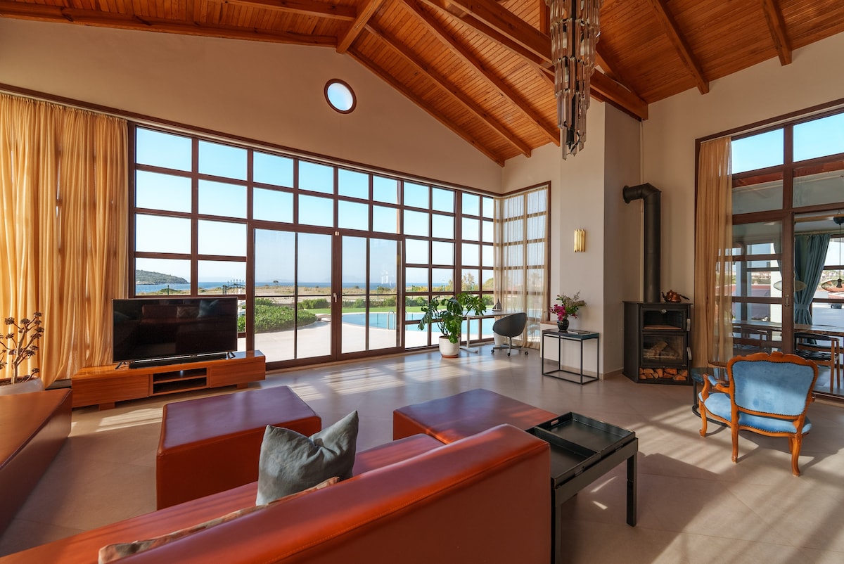 Nad morzem! Zapierający dech w piersiach panoramiczny widok na Morze Egejskie. Duży basen i fontanna wodna. Patio z tradycyjnym piecem ceglanym opalanym drewnem, a także grillem Weber Summit. Mnóstwo miejsca do siedzenia/jedzenia/gotowania. Energia słoneczna 7KW (koniec z przerwami w dostawie prądu!) Gigabit! Światłowód! 5 sypialni, 5 pełnych łazienek, w pełni wyposażona kuchnia, weranda, ogromny salon z wysokimi sufitami. Plaża Ilıca 6 min, Alacati 10 min, 4 min do HotSpring Świetny dom dla rodzin i przyjaciół szukających relaksujących wakacji.