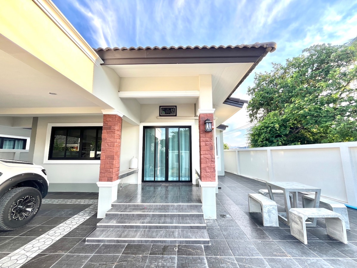 Dom znajduje się w pobliżu miasta Hua Hin z pełnym wyposażeniem. Idealne na zajęcia dla rodziny i znajomych. * * * Szczegóły zakwaterowania - Mniej niż 10 minut do morza - W pobliżu restauracji, kawiarni, browaru, targu - Możesz zamówić dostawę, usługę i jedzenie pod drzwiami. - Basen - Zabawki wodne - Duży suwak - 7-stopowy stół bilardowy - Karaoke - Smart TV - Darmowe Wi-Fi - Ręczniki kąpielowe. - Podgrzewacz wody -klimatyzacja - Grill, kuchenka gazowa i elektryczna - Długi stół -pralka - Suszarka do włosów - widoki na góry