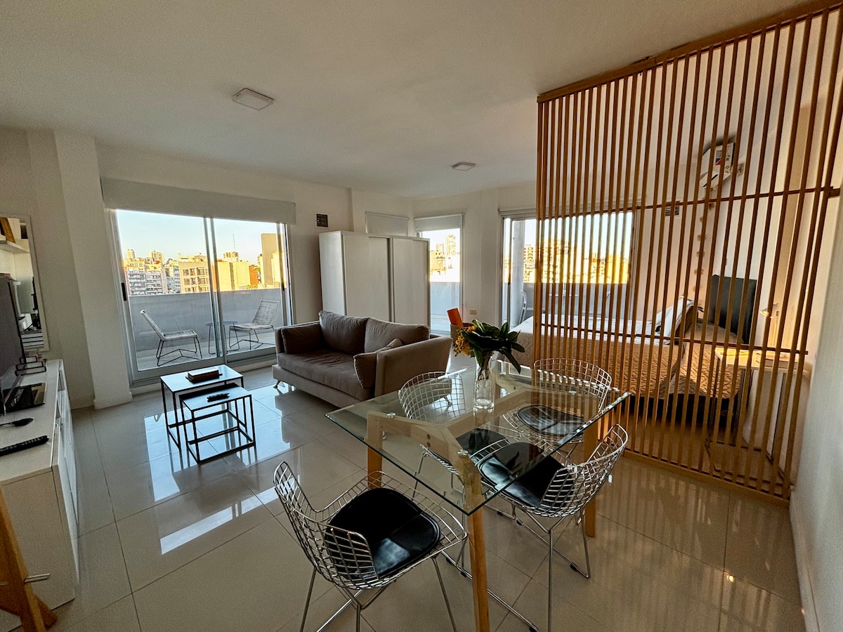 Luksusowe studio w samym sercu Palermo Hollywood. Nowa, ciepła, bardzo jasna przestrzeń ze spektakularnym prywatnym tarasem z podwójnym jacuzzi z ciepłą wodą, wyposażona we wszystko, czego potrzebujesz, aby Twój pobyt w Buenos Aires był wyjątkowy.