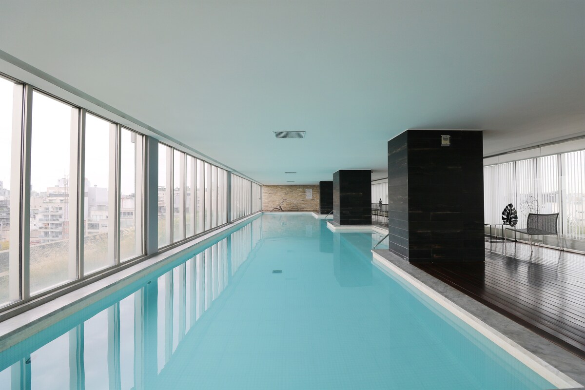 Nowoczesny apartament położony w samym sercu Palermo Hollywood. Jest otoczona najlepszymi restauracjami i barami w mieście. To bardzo modna okolica. Mieszkanie jest bardzo jasne, nowoczesne i pięknie urządzone. Idealne dla par. Szybkie Wi-Fi, wyposażona kuchnia, klimatyzacja, inteligentny telewizor. Obejmuje wspólne przestrzenie, takie jak 2 baseny, jeden wjazd/wyjazd i jeden odkryty, sauna, siłownia i suma. Idealne do delektowania się lokalnym jedzeniem i modnymi barami. Nadzór 24/7
