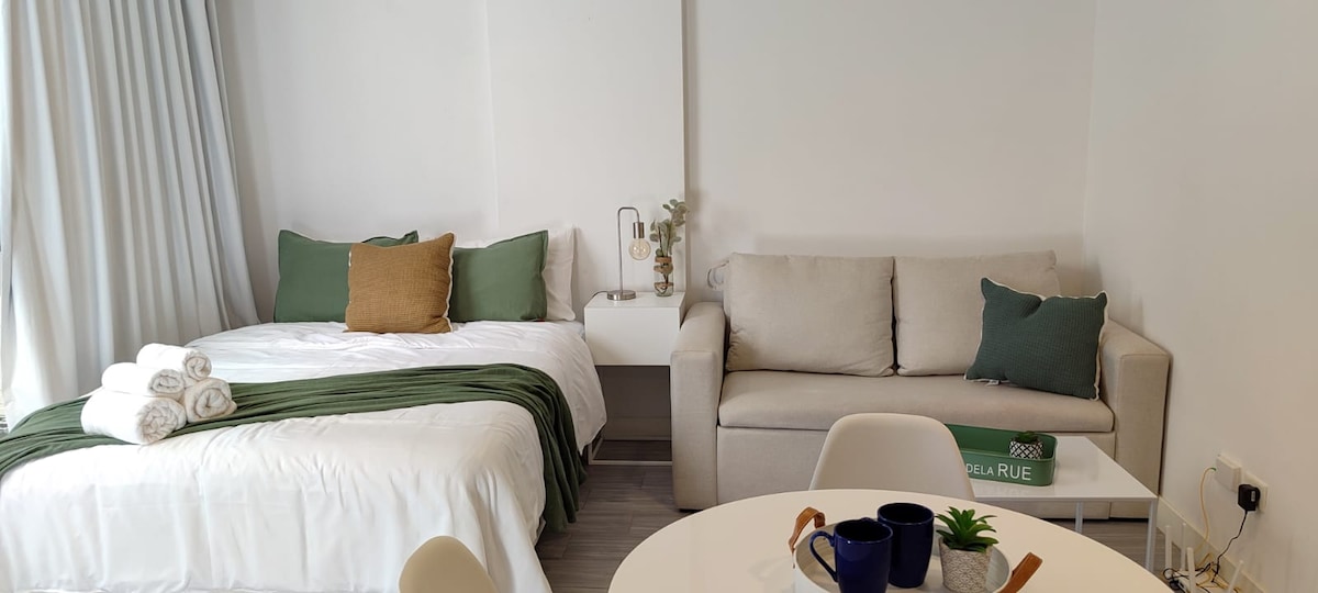 Beautiful brand new studio, fully furnished with excellent quality equipment -TV 32' with cable/Netflix, WIFI 100 MB, A/C hot-cold, King Size bed, desk, full kitchen, -in a Hotel style building with 24 Hs security, swimming pool, Gym, laundry. Located in the heart of Palermo Soho: 200 mts. from subway D/Plaza Italia (Santa Fe Av.), close to stores, bars, restaurants, shopping malls, parks, museums and with easy access to downtown and many touristic spots!