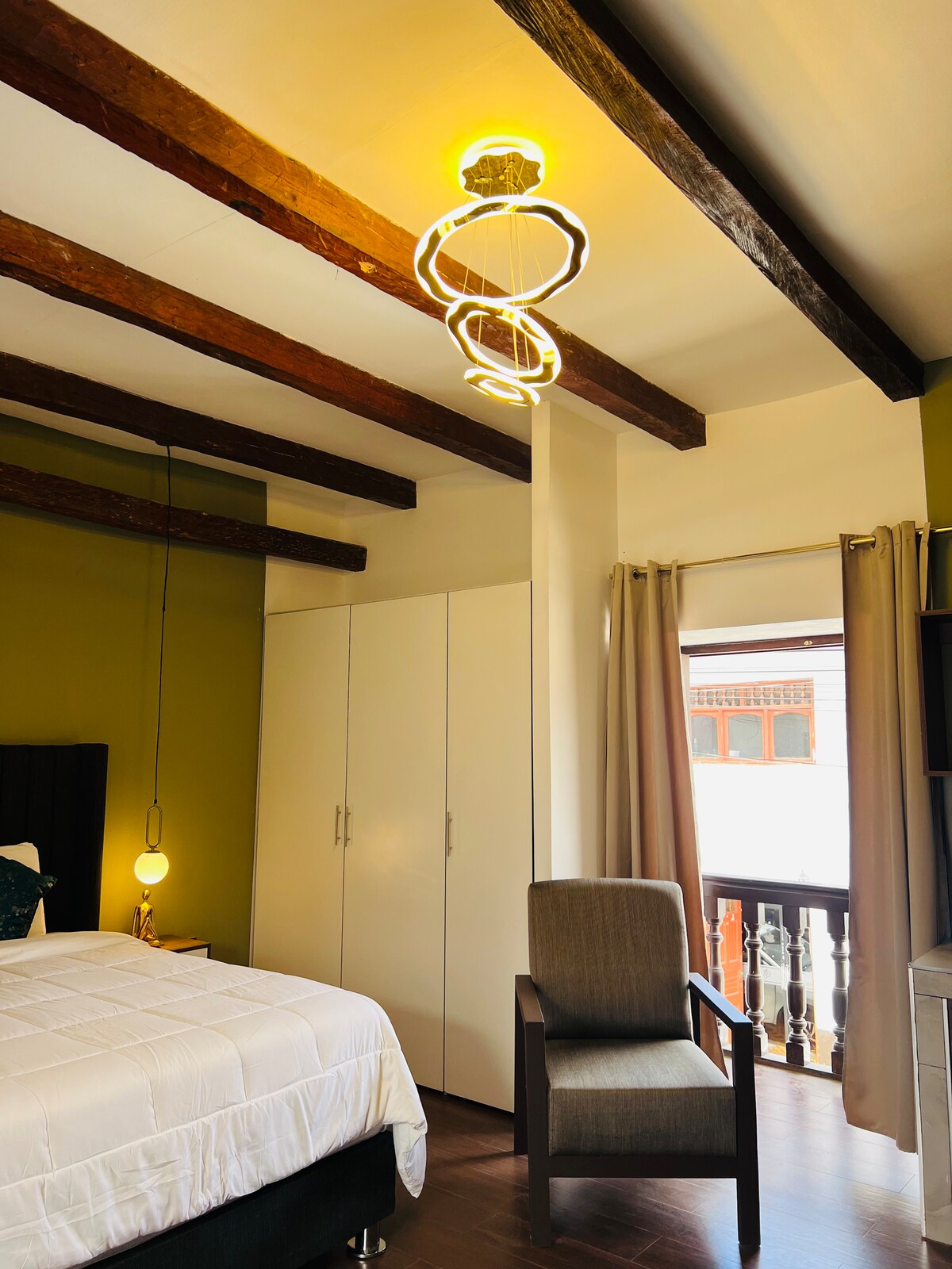 Ciesz się stylowym doświadczeniem w tym centralnie położonym domu. Pokój na pierwszym piętrze, z własnym wystrojem, łóżkiem typu Queen Size, łazienką, prywatną kuchnią i jadalnią, ciepłą wodą, 55-calowym telewizorem, Wi-Fi, tarasem. Będziesz mieć również dostęp do innego tarasu i baru na piętrze, z 65-calowym telewizorem i widokiem na całe miasto.