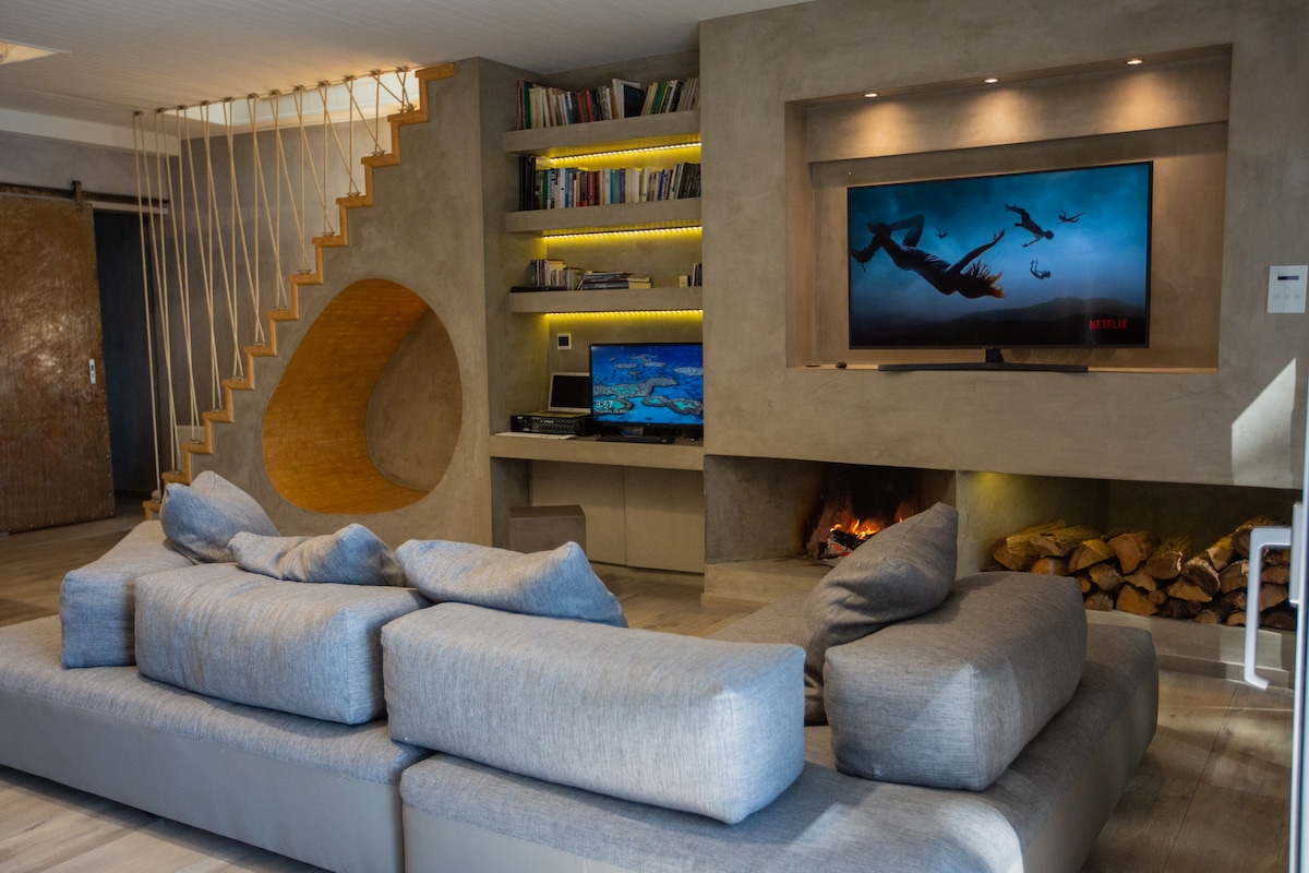 The charming and spacious Spa Villa Skaloma of 120sqm with large spaces and sunny lounge that is open to the south, is a luxury two-storey villa that can accommodate up to six people, in two bedrooms and two bathrooms. Villa, the combination of high ceilings with large tree trunks and large openings, allow a stunning view of the sea. “It's built in with the sea" as it is only 10 meters away from it and is located in the best part of the beach, under plane trees and near a small sea platform.