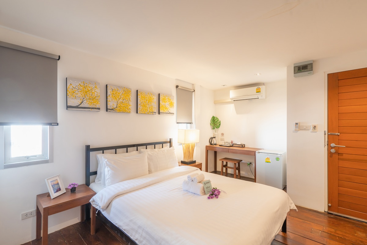 Nasz wyjątkowy dom znajduje się w jednej z najstarszych i najbardziej lokalnych dzielnic w pobliżu Bramy Thapae i targu Warorot. Z dala od ulicznego hałasu znajduje się nasz dom z 2 sypialniami i 2 łazienkami, 1 łóżkiem w salonie (można zapewnić 1 dodatkowe łóżko), który może pomieścić do 8 osób. W pełni wyposażony w klimatyzację, Wi-Fi, sprzęt kuchenny i pralkę, jest idealny dla rodziny lub znajomych! Oferujemy 1 bezpłatną usługę odbioru z lotniska CNX/autobusu/dworca kolejowego i w obrębie Chiangmai City.