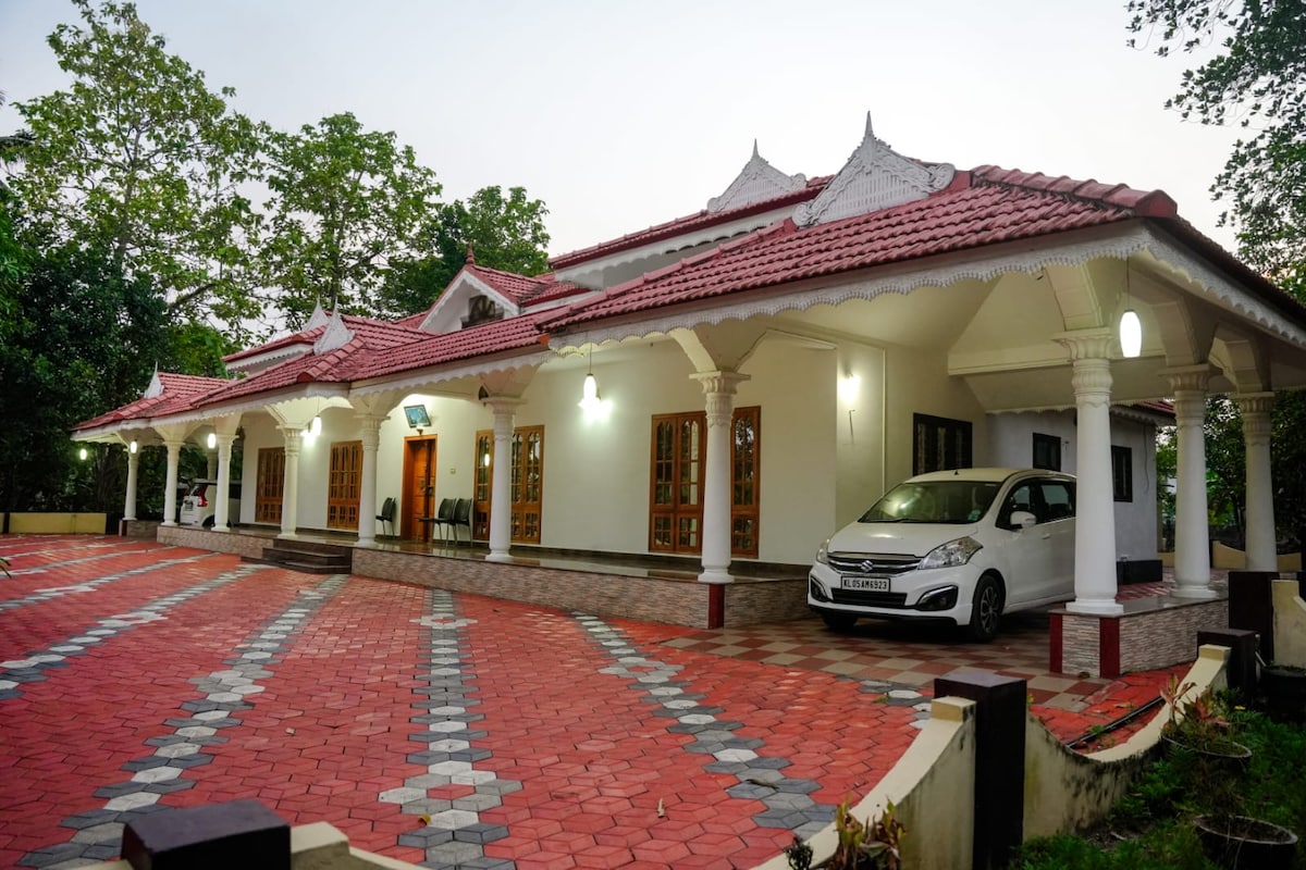 🏡 4 niezależne sypialnie z prywatną łazienką, odpowiednie dla 8 osób. Dostępne są do 2 dodatkowych łóżek (@ INR 500/łóżko) • Budynek parterowy ze wszystkimi pokojami na parterze dla łatwego dostępu. • Wspólna kuchnia • Przestronna jadalnia ze wszystkimi niezbędnymi udogodnieniami • W odległości krótkiego spaceru do Mararikulam Beach • Basen • Bezpłatne śniadanie i Wi-Fi, idealne do pracy zdalnej. • Parking na miejscu. • Tradycyjny obiad i kolacja w Kerali dostępne na życzenie.