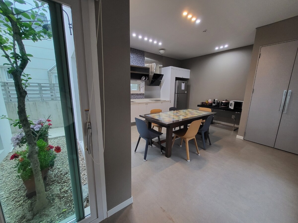 Yeonhwa 49 to przestrzeń premium z pięknymi oknami, które otwierają się na zielony krajobraz niczym obraz :) ▷ 54 pyeong (182 m²) całe piętro 1 i 2 (z wyjątkiem pokoju gospodarza na 1 piętrze) ▷ Duży dziedziniec i okno z widokiem na pole ▷ Najwyższej jakości meble, zastawa stołowa, pościel 20 minut od▷ stacji Ulsan (KTX, SRT), na życzenie gości zapewniony jest transfer z dworca