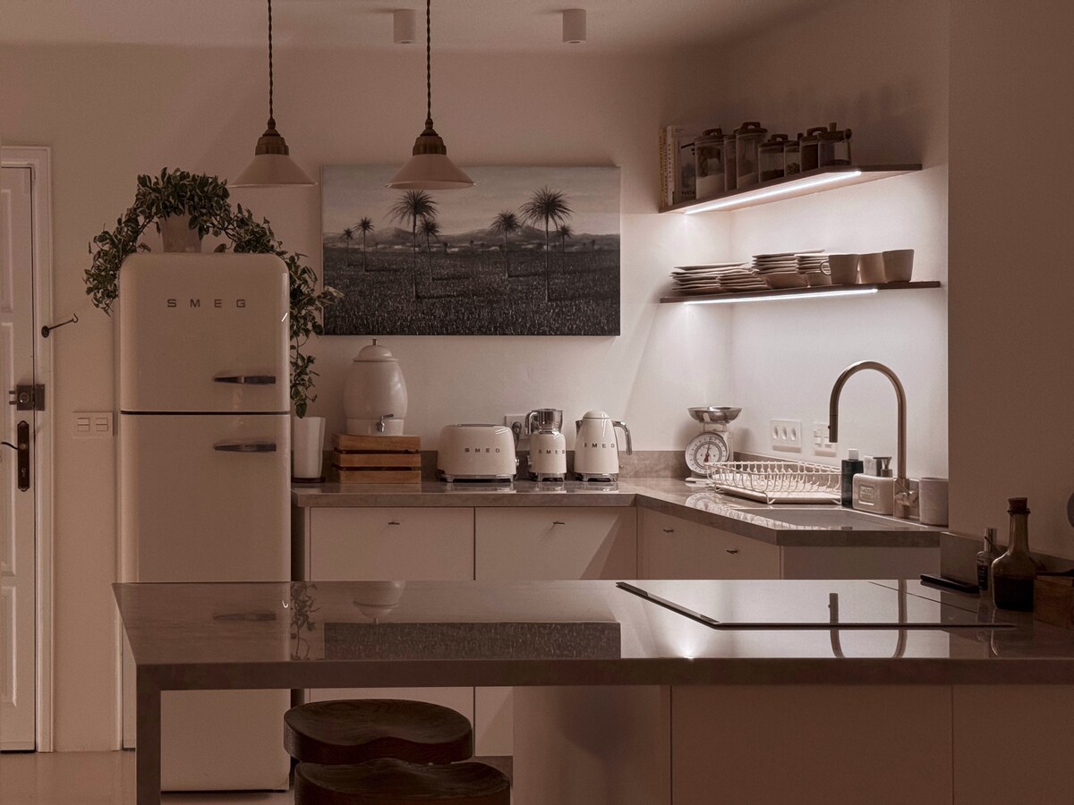 Luksusowy apartament przy plaży, w tętniącym życiem sercu Costa Teguise. Minimalistyczne wnętrze z dziełami sztuki i roślinnością zachęca do spokoju i odpoczynku. Na tarasie można podziwiać niebo i morze. Jest wyposażony w każdy szczegół: designerska kuchnia, oświetlenie pośrednie, prysznic wielofunkcyjny, kącik do czytania, jadalnia wewnątrz i na zewnątrz... Zostało zaprojektowane przez właścicielkę, pisarkę, jako jej spokojny kącik, więc jest czymś więcej niż apartamentem wakacyjnym. Poczujesz się jak w domu.