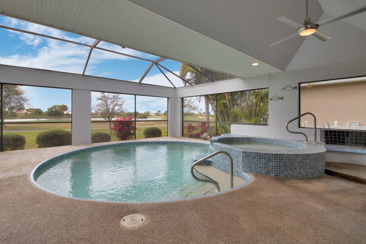 Nowo wyremontowany dom, który został zaprojektowany z myślą o rodzinnej rozrywce i relaksie. Otwarty układ pozwala cieszyć się stałymi bryzami nad wodą podczas relaksu z rodziną, pływania w basenie lub oglądania manatów w kanale, który ma bezpośredni dostęp do portu Charlotte i Zatoki. Dom znajduje się w społeczności golfowej Burnt Store Isles (Twin Isles Country Club, 3 minuty jazdy) z pobliskimi centrami handlowymi, Fisherman's Village i centrum Punta Gorda.
