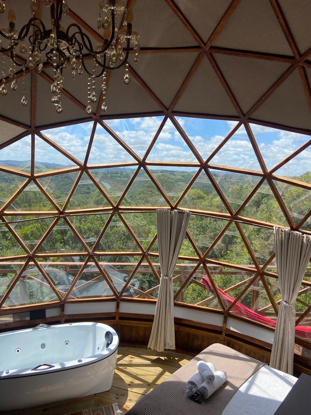Niezwykłe doświadczenie między rodzimym lasem a Lagoa dos Patos. Położona na plaży Praia do Laranjal, w kompleksie Ponta da Coxilha, wciąż w budowie, Cabana do Mato 1985 łączy rustykalną drewnianą konstrukcję z wyrafinowanymi akcentami: wanną z hydromasażem, Wi-Fi, Netflix, inteligentnym domem, paleniskiem, grzejnikiem, minibarem, zastawą stołową, kryształowymi kieliszkami do wina i szampana, ekspresem do kawy, elektrycznym dzbankiem, kuchenką mikrofalową, prysznicem gazowym, pościelą i ręcznikami.