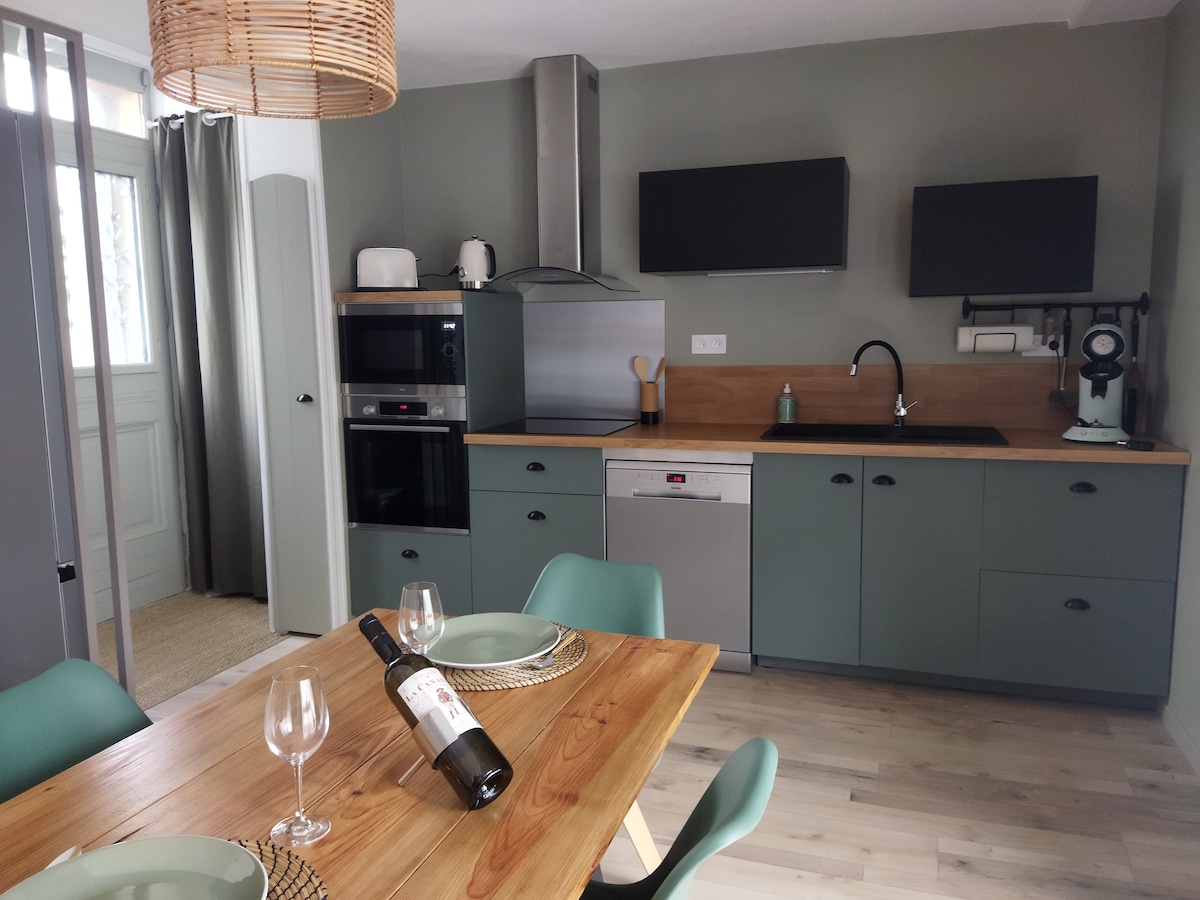 Witaj w naszym domu. Przyjdź i odkryj naszą piękną, w pełni wyposażoną i odnowioną kamienicę z nowoczesnym wystrojem inspirowanym stylem skandynawskim. Idealnie położony między zadaszonym targowiskiem (150 m) a stadionem jeździeckim Sichon (150 m), znajdziesz się zaledwie kilka minut spacerem od centrum miasta (8 min), łaźni termalnych lub jeziora Allier (10 min). Po wspaniałym dniu zwiedzania, przyjdź i ciesz się prywatną wanną z hydromasażem dla dwojga, aby wspólnie zrelaksować się...