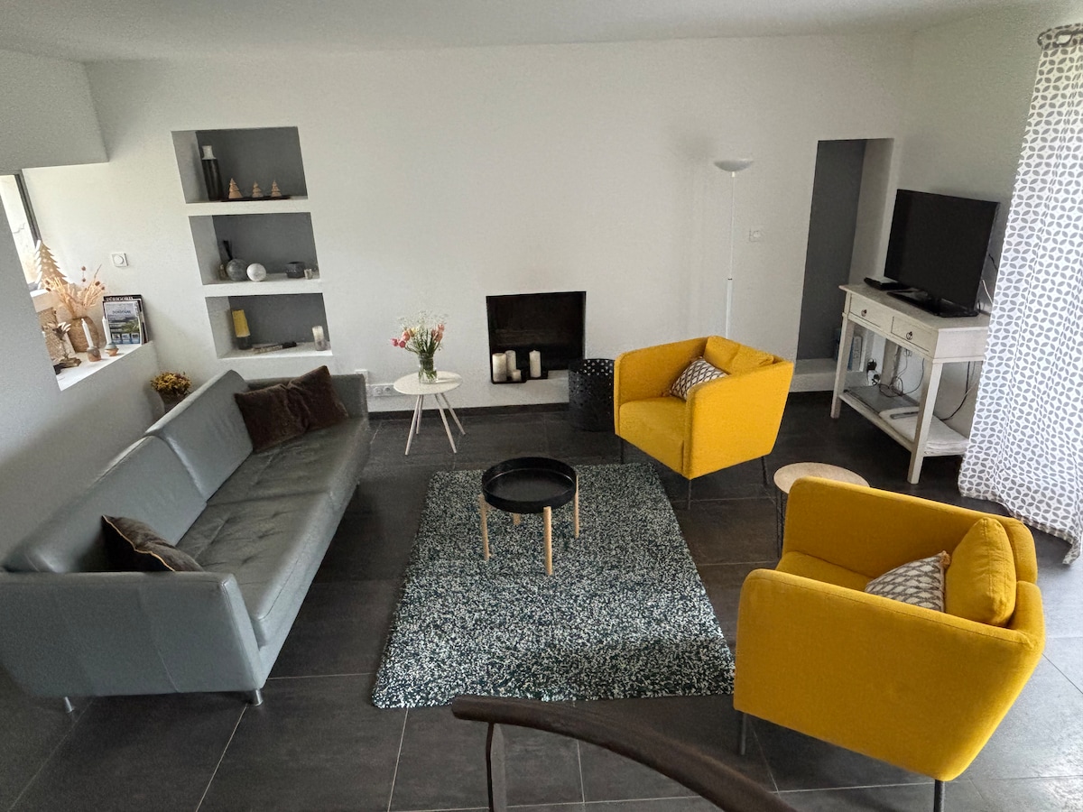 Odkryj En Haut du Paradis, nowoczesne miejsce o powierzchni 94 m² skąpane w świetle☀️, idealnie położone w Sadroc, w samym sercu Corrèze. Dwie sypialnie z łóżkami typu king-size🛏️, w pełni wyposażona kuchnia i 5-osobowe prywatne spa ze spektakularnymi widokami sprawiają, że jest to idealne miejsce na relaks w prywatności. Ciesz się wysokiej klasy komfortem: klimatyzacją❄️, meblami zaprojektowanymi na zamówienie, elegancką łazienką i kamienną ścianą, która dodaje uroku i charakteru.