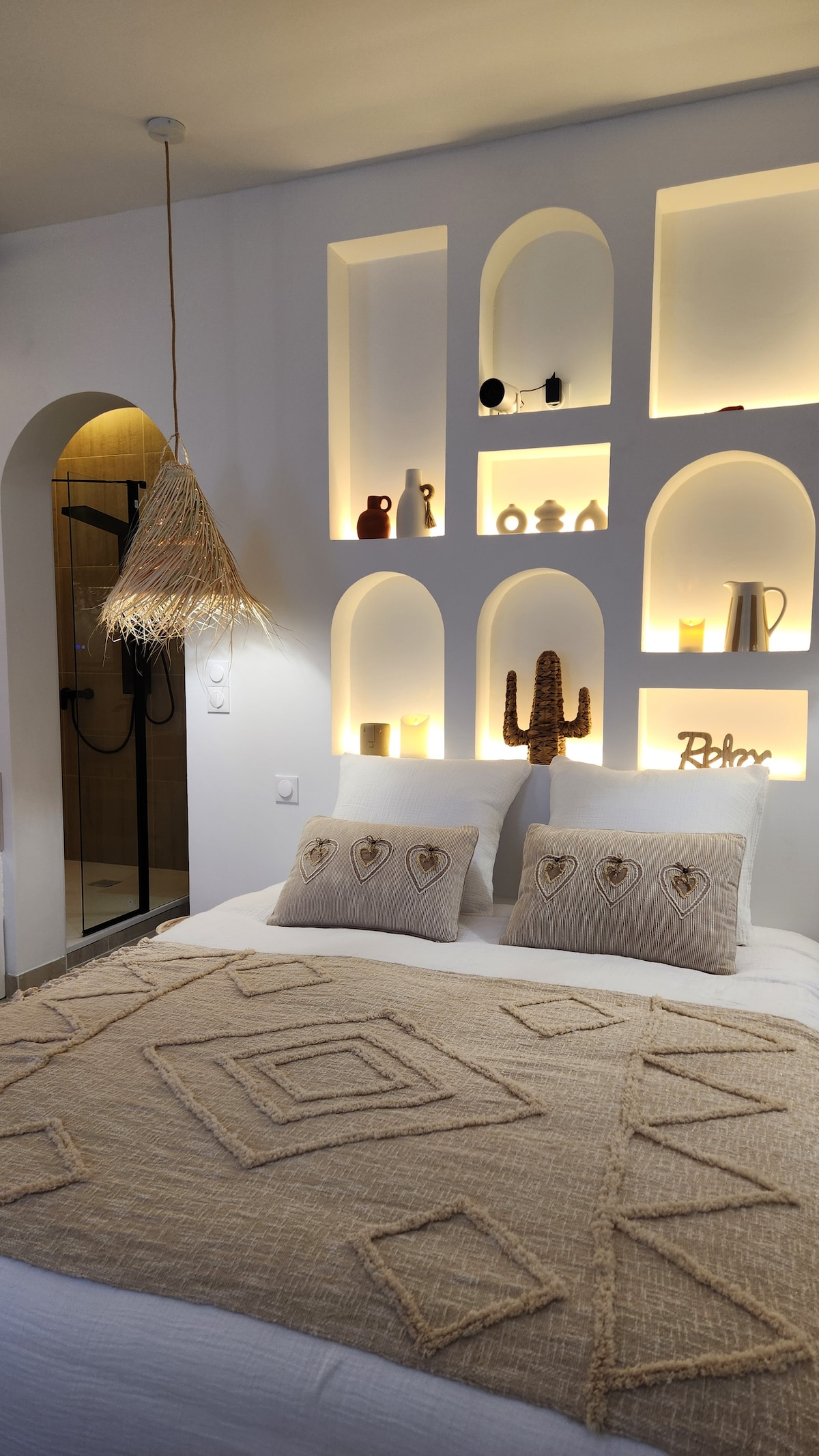Ten pensjonat typu bed and breakfast o układzie dwupoziomowym składa się z sypialni z przylegającą łazienką oraz salonu z kuchnią. Wystrój łączy w sobie tradycję i nowoczesność, a oryginalne kamienne i terakotowe podłogi współgrają z płótnami współczesnego artysty. Te dwie przestrzenie tworzą piękną powierzchnię o powierzchni 40 m², są połączone wspaniałymi spiralnymi schodami z kutego żelaza, które mogą być bardzo wąskie! Prywatny parking dostępny za dodatkową opłatą.