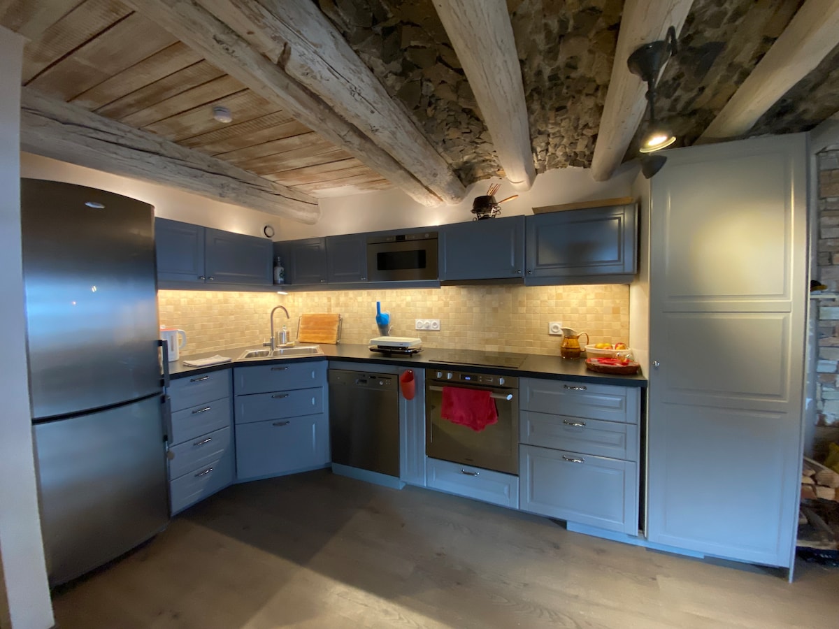 Piękny apartament na parterze typowego domu w Vallouise. Urok starego ze wszystkimi wygodami XXI wieku. Bezpośrednio na południe. Duży balkon z widokiem na góry i stoki narciarskie Puy St Vincent. Taras, duży ogród, zamknięty garaż na rowery / motocykle. Nowe WI-FI w kuchni. Telewizor LED 102 cm Dostarczona pościel, prześcieradła, ręczniki, ręczniki do herbaty. Cicha i cicha okolica w pobliżu sklepów; mini targ, sklepy sportowe, apteka ...
