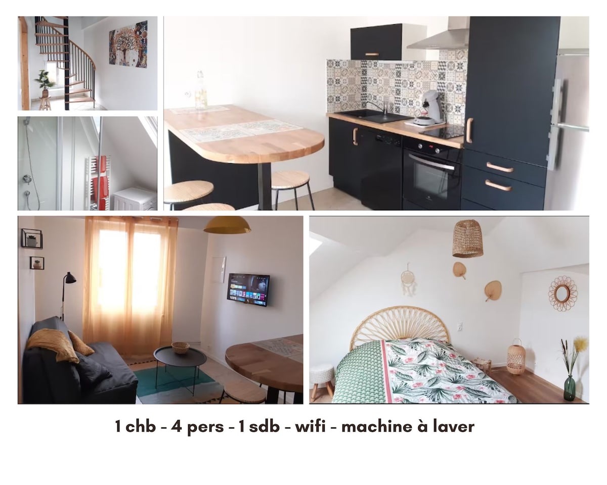 Au cœur de la ville, venez apprécier votre séjour dans une maison connectée 38m², très bien équipée, avec facilité de stationnement. Profitez, en rez de chaussée, d'un bel espace chambre avec lit 160. Disposez d'une salle de bain de style atelier avec douche et son nécessaire de toilette ainsi que d'un coin salon cosy ouvert sur une belle cuisine bien équipée. Une mezzanine avec 2 lits en 90 est également accessible par une jolie échelle de meunier d'origine. Idéalement située, proche de tout!