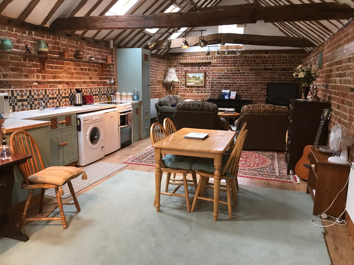 Studio to nowoczesny, samodzielny apartament ze śniadaniem w wiosce, 5 minut od drogi A12, 7 mil na południowy zachód od Ipswich, na granicy Suffolk/Essex. Idealne na krótki pobyt lub dłuższą wizytę, aby odkryć piękną okolicę. Przestronny pokój dzienny z podwójnym łóżkiem, dobrze wyposażona łazienka z prysznicem, aneks kuchenny. Własne drzwi wejściowe z parkingiem obok. Jedzenie na lekkie śniadanie z własnym wyżywieniem. Dobrze wychowany pies jest mile widziany, po wcześniejszym uzgodnieniu.