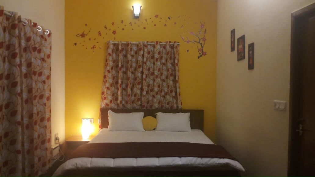 Prywatny pokój na parterze z widokiem na ogród w indywidualnym bungalowie, w pełni umeblowany, przyjazny dla zwierząt, z klimatyzacją i Wi-Fi, w pobliżu lotniska Chennai i szpitala MIOT. Może pomieścić 3 osoby, ma łazienkę i wspólny dostęp do dachu. Ale założę się, że najbardziej spodoba Ci się widok na rzekę i zachód słońca z naszego dachu lub księżyc w pełni. Możesz również poprosić o nasze domowe posiłki przygotowane przez gospodarza za dodatkową opłatą. Mamy również dostęp do hulajnogi Scooty i pralni.