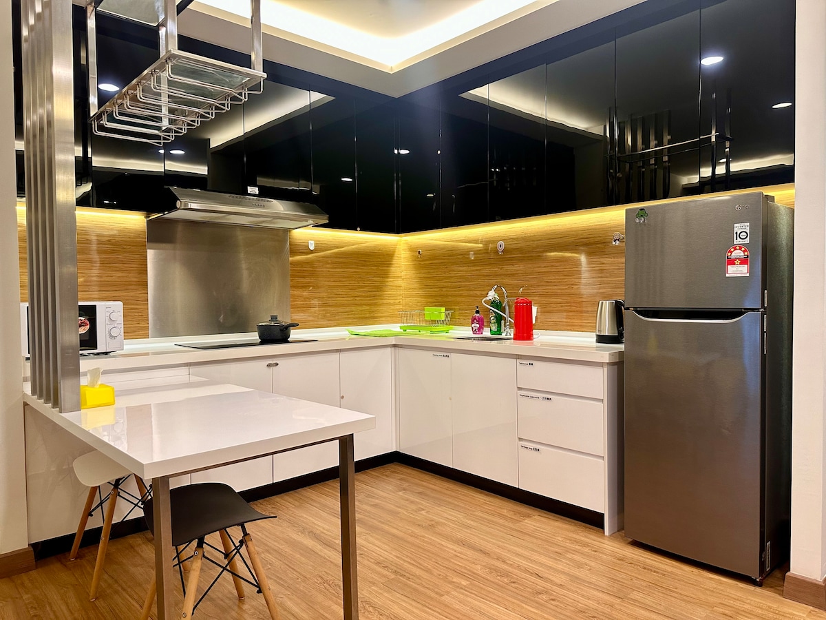 StarSuiteAC – Luxury Stay Above the Clouds! Luksusowo zaprojektowany bliźniak na wysokim piętrze, z zapierającym dech w piersiach widokiem na panoramę KL. Zrelaksuj się pod rozgwieżdżonym sufitem w galaktyce i ciesz się pobytem jak nikt inny! Ciesz się dźwiękoszczelną salą karaoke, bilardem i hokejem na powietrzu oraz kinem domowym z dźwiękiem przestrzennym, aby uzyskać prawdziwe wrażenia filmowe. Udogodnienia: kuchnia, lodówka, kuchenka mikrofalowa, urządzenie do gotowania ryżu, frytkownica, filtr do wody, pralka (z suszarką), fotel do masażu itp.
