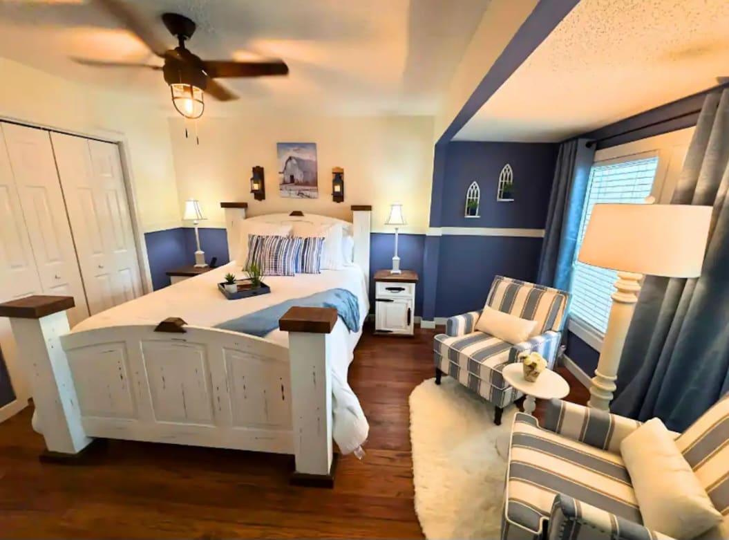 Experience charming lake view living at Lake Sequoyah in Cherokee Village AR. Two bedrooms, 5 beds, 1 bath, sleeps 10. Your home away from home offers a fenced-in backyard, nice-sized front deck with breathtaking lake views, cozy fire pits in the front and back with Adirondack chairs for relaxation. Enjoy four kayaks with lake gear and access to two recreational centers, golf courses, the Southfork River, and scenic walking trails.