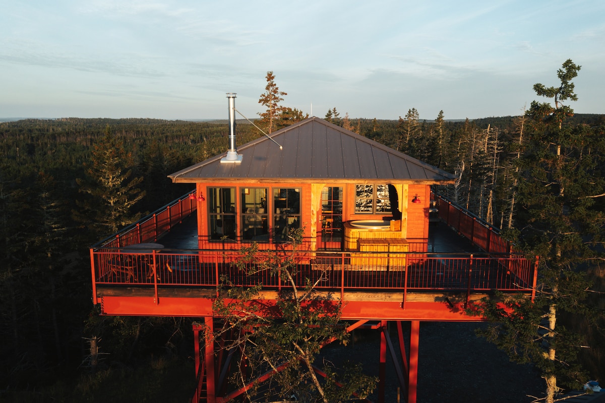 Wysoko na zboczu oceanu, zbudowane na stalowych nogach o wysokości 30 stóp, przytulne kwatery są podobne do starej kabiny statku. Z widokiem 360 stopni z wysokości 9 metrów możesz śledzić słońce i gwiazdy na niebie, dostosować swój rytm do przypływu i odpływu oraz obserwować fale z góry. Wieczory spędzisz przy przytulnym piecu na drewno, zachód słońca będziesz podziwiać przy drinku na tarasie, a wschód księżyca – zanurzając się w wannie z hydromasażem. Poranki zaczniesz od świeżego espresso. Pozwól sobie na chwilę opuścić ląd i stań na straży w Wieży.