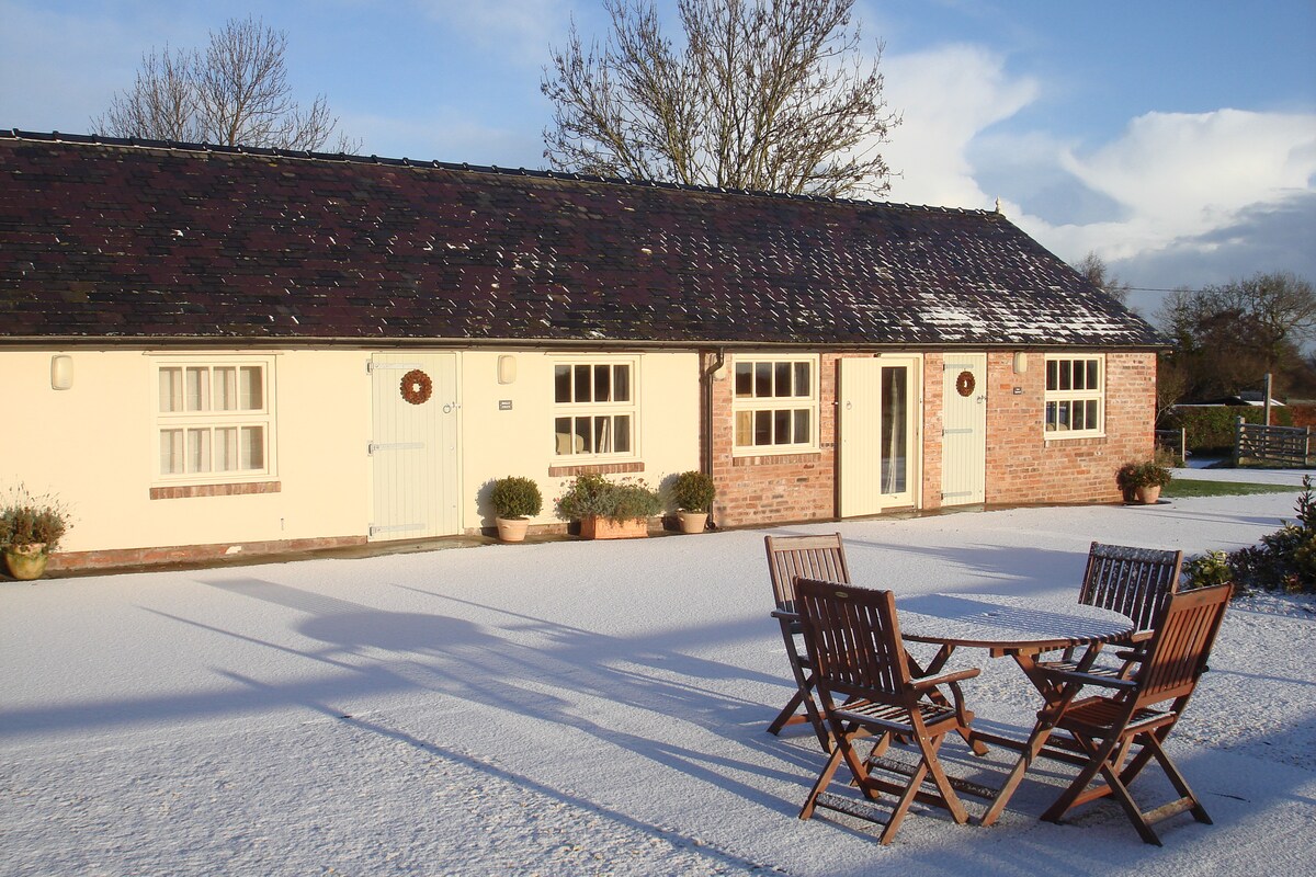 Stajnia to ekologiczny domek wiejski na naszej małej farmie. Przestrzeń jest idealna dla dwojga i wygodna dla czworga, z oryginalnymi belkami i widokiem na wiejskie krajobrazy w kierunku Sandstone Ridge. Odkryj urocze wioski z pubami, historyczne Chester, zoo, szlaki piesze i rowerowe, lokalne targi i ogrody – spokojny wypoczynek na wsi z zajęciami dla wszystkich.