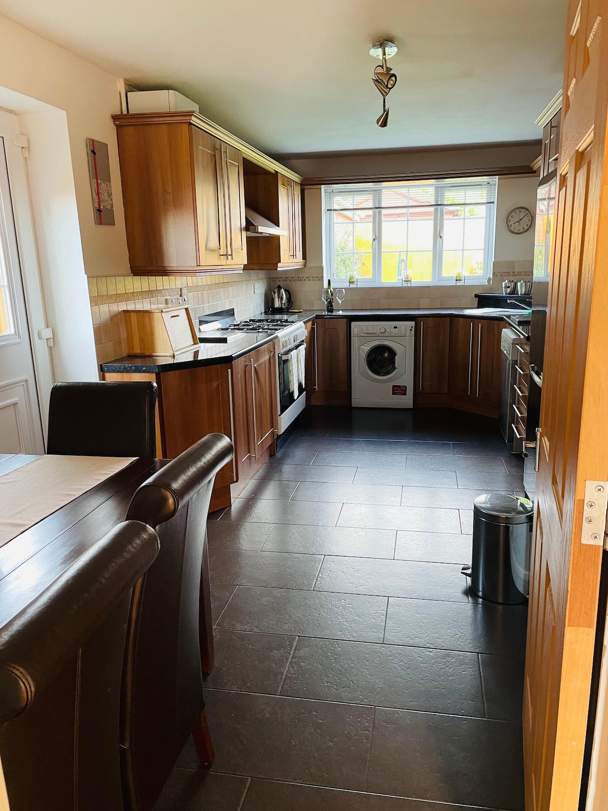 Przenieś całą rodzinę do tego pięknego domu z domu. Naprzeciwko parku i lokalnych udogodnień, z dużą ilością miejsc parkingowych poza ulicą i bramką wjazdową. Napęd jest zajmowany tylko przez dwa domy (mieszkamy w drugim). Dzięki centralnej lokalizacji łatwo stąd dotrzeć do Alton Towers, The Potteries, Peak District i wielu innych miejsc. Pamiętaj – zwierzęta są niedozwolone, chyba że gospodarz wyrazi na to uprzednią zgodę. W domu jest Pokój z łóżkiem typu king (łazienka z prysznicem) 1 pokój dwuosobowy 1 pokój dwuosobowy (z łazienką) 3 pojedyncze sypialnie Oddzielna łazienka z prysznicem