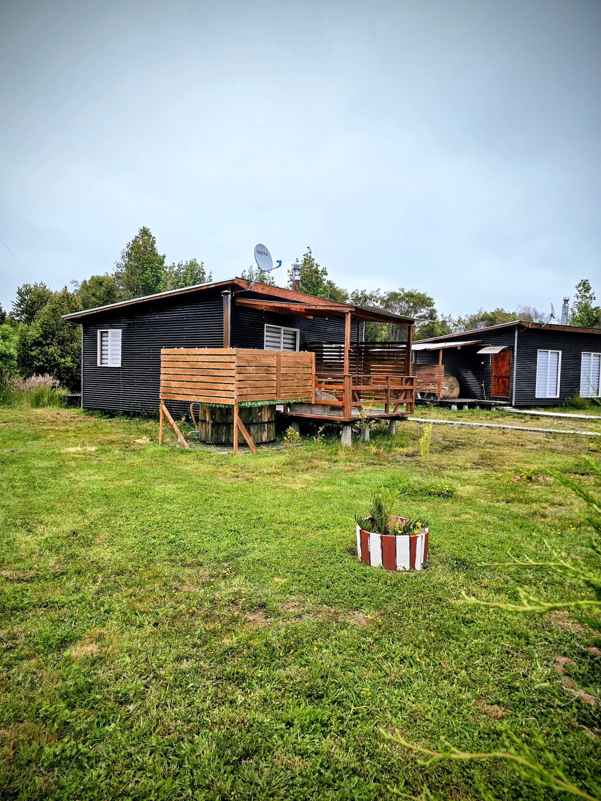 Relájate con toda la familia en una cabaña con opción de tinaja que tiene un valor adicional de 30.000 pesos que se cancela en el lugar, la cabaña está totalmente equipada , cuenta con wifi, televisor smartv, etc. En un lugar rodeada de bosques y a tan solo 1 kilómetro del canal de chacao..A tan solo 5 kilómetros de los transbordadores y a 28 kilómetros de ancud donde puedes recorrer muchos lugares turisticos.