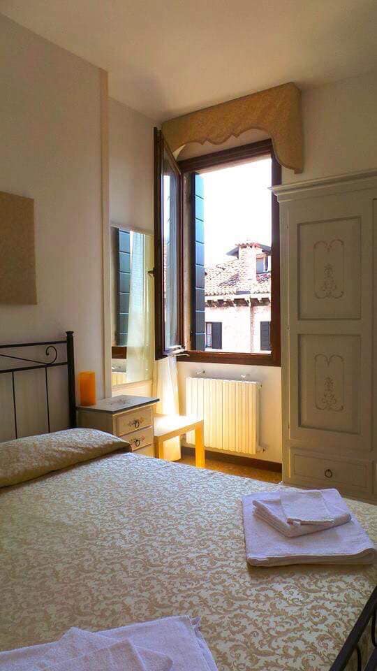 Bellissima camera da letto, con bagno privato e ingresso indipendente con porta blindata. A meno di 5 minuti a piedi da Piazzale Roma o dalla stazione. Si trova al II' piano del palazzetto, ha soffitti alti con travi a vista e pavimento in legno. Gli impianti e gli arredi sono nuovi, comodi e moderni. La stanza, luminosa e ventilata, si affaccia su una tipica corte veneziana. Dal 1570 ad oggi, ogni domenica mattina alle 10.30 i canti gregoriani dal vivo e l'incenso arrivano dentro casa. No AC.