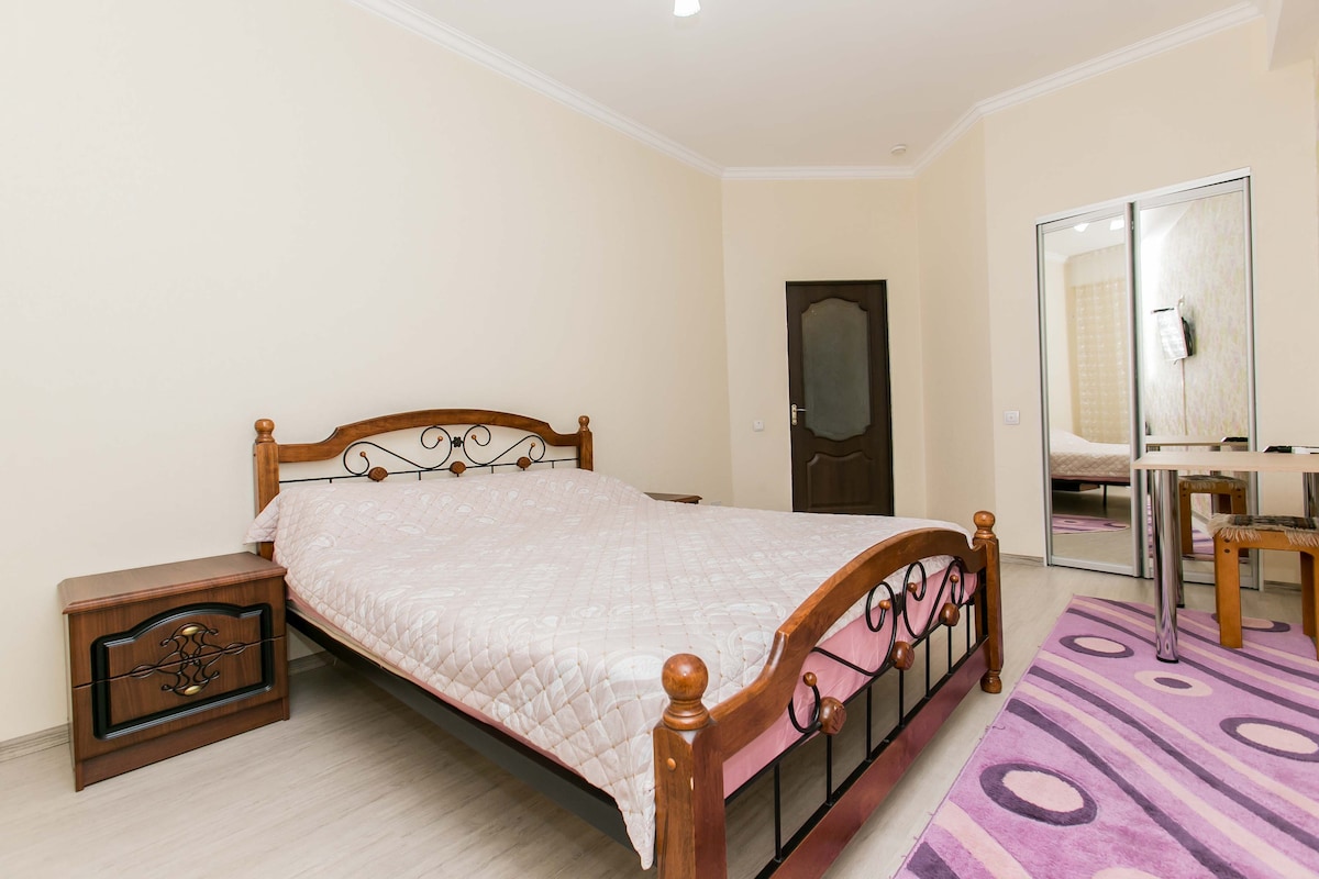 Wygodny i przestronny apartament. Mieszkanie ma powierzchnię 85 m2, z 2 oddzielnymi sypialniami. W sypialniach znajduje się łóżko typu queen size i telewizor podłączony do kanałów premium. Kuchnia jest przestronna i wyposażona we wszystko, czego możesz potrzebować do przygotowania naczyń. W domu są 2 oddzielne łazienki W apartamencie znajduje się przestronny balkon Na podwórku domu znajduje się plac zabaw dla dzieci