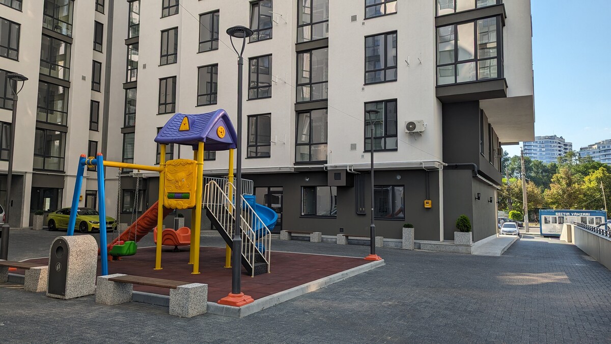 Położony w nowoczesnym wieżowcu w sercu centrum miasta, tuż obok parku katedralnego. To jeden z nielicznych budynków w Kiszyniowie z konsjerżem i całodobową ochroną bezpośrednio zlokalizowany w holu dla maksymalnego bezpieczeństwa. W budynku znajduje się w pełni wyposażona siłownia oraz zabezpieczony plac zabaw dla dzieci. Ogrzewanie i ciepłą wodę w mieszkaniach zapewnia niezawodny system centralnego ogrzewania. Każdy apartament wyposażony jest w wideodomofon. Do dyspozycji Gości jest bezpłatny parking uliczny.