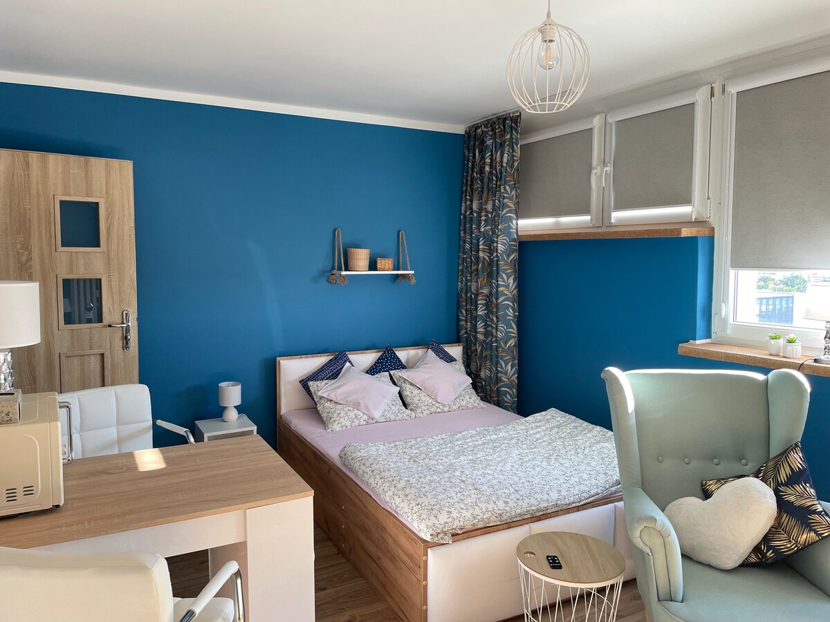 Malutkie, jednak jasne i bardzo dobrze skomunikowane studio z pięknym widokiem na zielone tereny miasta i zachody słońca. Funkcjonalny aneks kuchenny z pełnym wyposażeniem niezbędnym do ugotowania posiłku. Dojedziesz tu autobusem bezpośrednio z pod dworca PKP lub taksówką w 4 minuty. Idealne miejsce dla pary lub jednej osoby. Parking w odległości 50 m od bloku. Small, but bright, sunny and cosy studio in Szczecin. - 5 minutes by public transport to the city centre and 10 min to river side