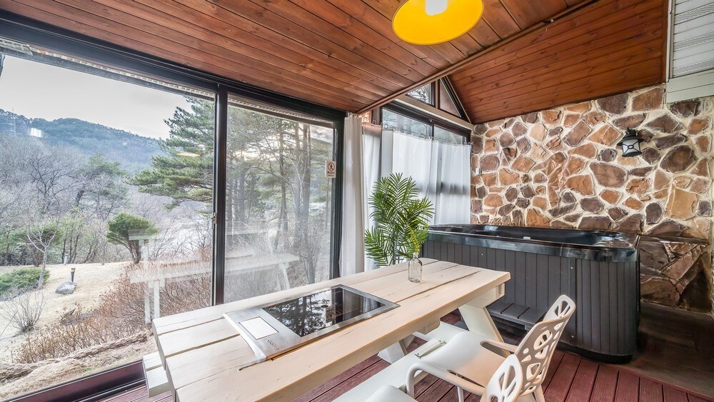 Yangyang Sunfield | Kryty basen z podgrzewaną wodą · Grill · Palenisko · Spa