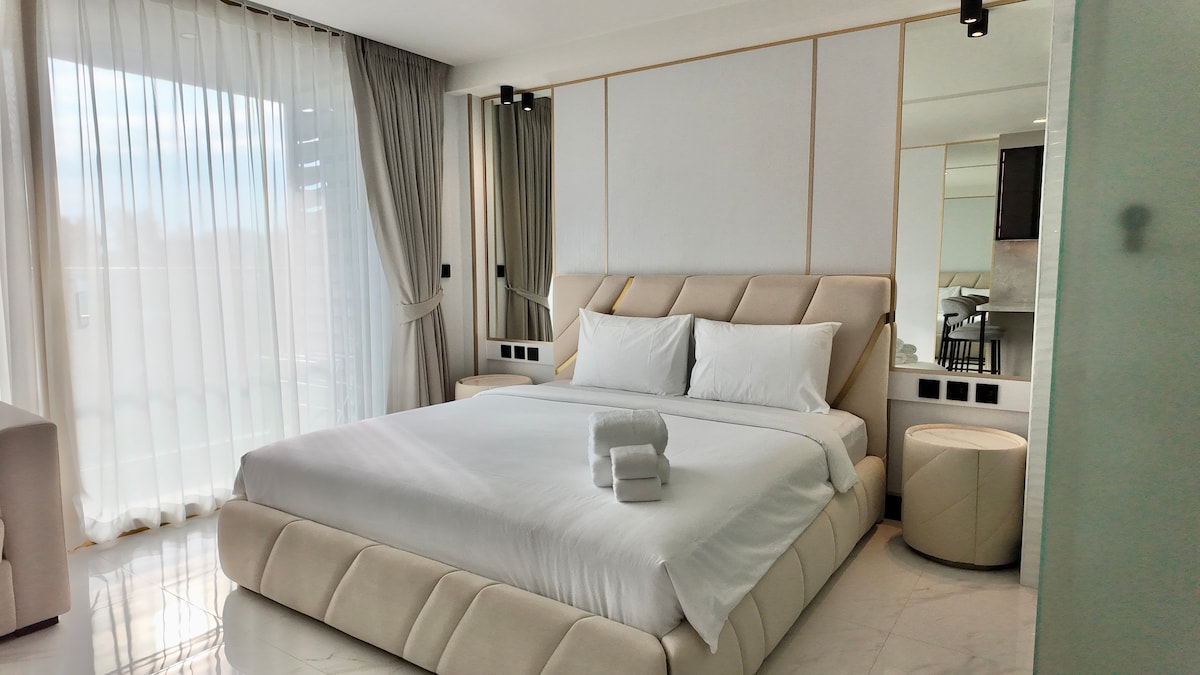 Wybudź się w tym jasnym studio w Surin Beach, zaledwie 650 m od plaży, i podziwiaj widoki na góry przez przeszklone ściany. Po dniu spędzonym na zewnątrz, popływaj w basenie na dachu z widokiem na morze, idź na siłownię lub skup się w centrum coworkingowym. Twoje prywatne gniazdko oferuje dwie ciche klimatyzacje, łóżko typu king, zasłony zaciemniające, duży telewizor Smart TV, Wi-Fi 500 Mb/s, w pełni wyposażony aneks kuchenny i pralkę. Samodzielne zameldowanie z inteligentnym zamkiem; woda i energia elektryczna wliczone w cenę.