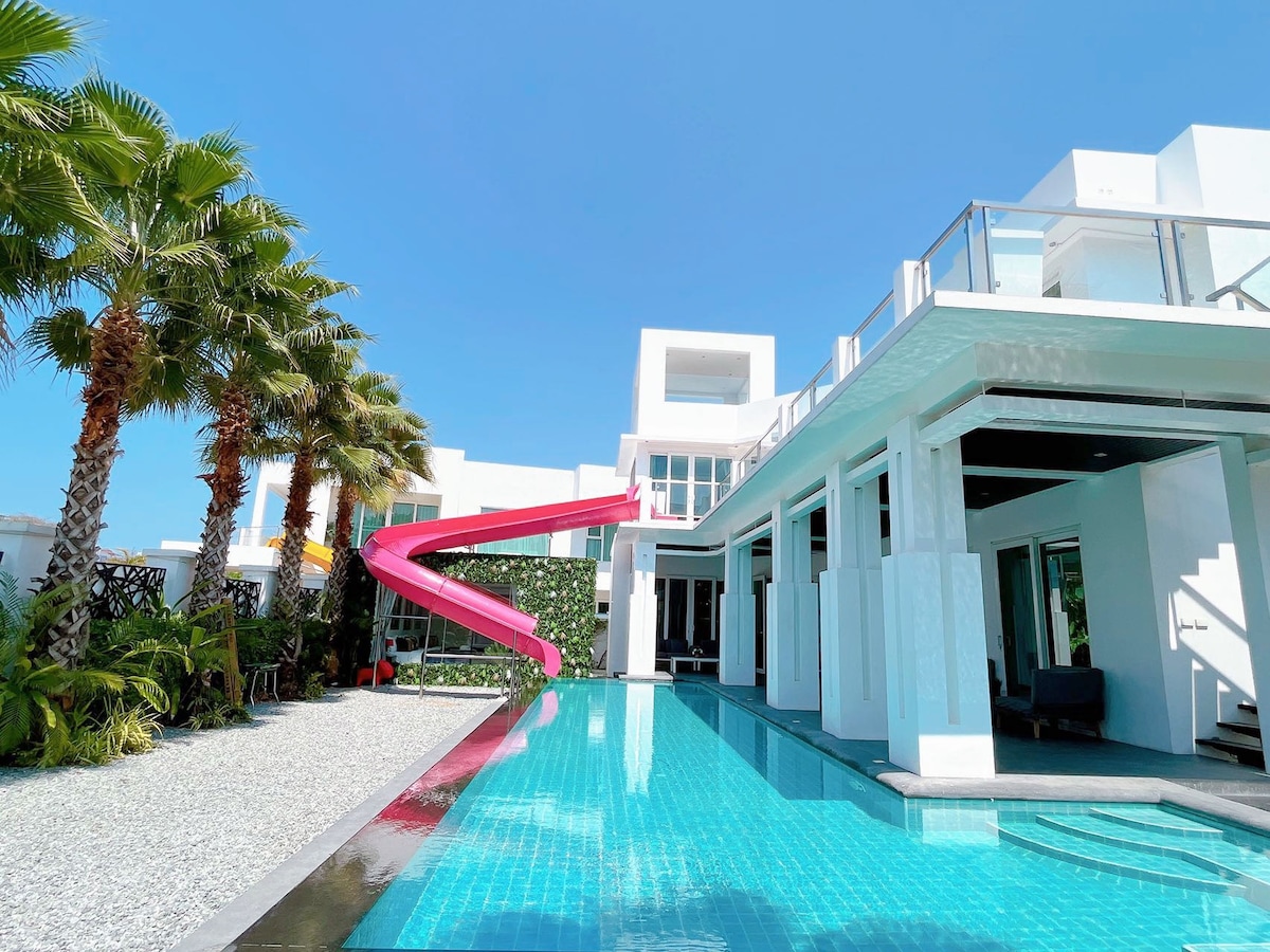 Q1 Pattaya Zhongtian Beach, wolnostojąca, ogromna 5 sypialni, 5 łazienek, 6 łóżek, ogromny basen, zjeżdżalnia, willa może zapewnić pływający śniadanie i usługi kucharza BBQ za dodatkową opłatą