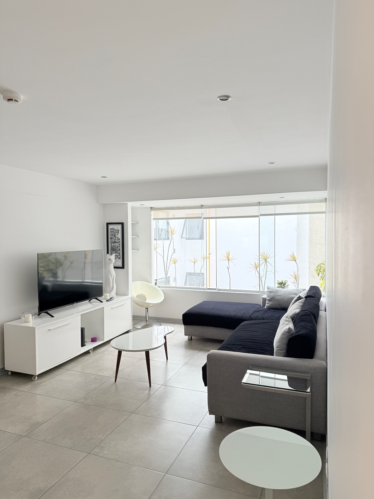Modern and cozy apartment on the 8th floor of a building with 24/7 security, just steps away from Kennedy Park, the Miraflores Boardwalk, Larcomar, and the National Stadium. It’s close to restaurants, cafés, supermarkets, pharmacies, and banks. The building features a pool, gym, business center, kids club, BBQ area, and 24/7 security. The apartment offers high-speed Wi-Fi, a fully equipped kitchen, washing machine, and free parking — perfect for family trips, work, or relaxation.