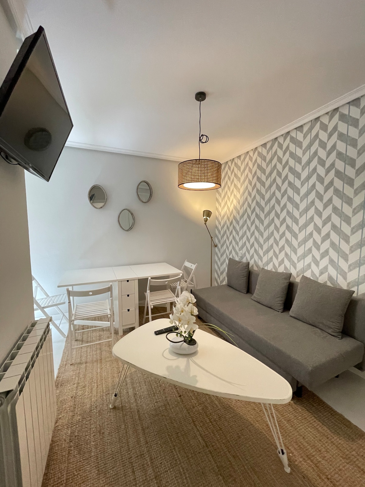 Totally refurbished loft with modern features but with a cosy feeling. The outdoor patio is very rare to find in central Madrid. Spacious layout and very high ceiling. Double glazing, individual gas heating, kitchen fully equipped .Double good mattress bed. Is very quiet. You don’t hear a noise despite being at one of the trendiest area, full of restaurants shops and fashionable bars. Temporary rental for non-tourist purposes. Online registration and contract signing are mandatory.