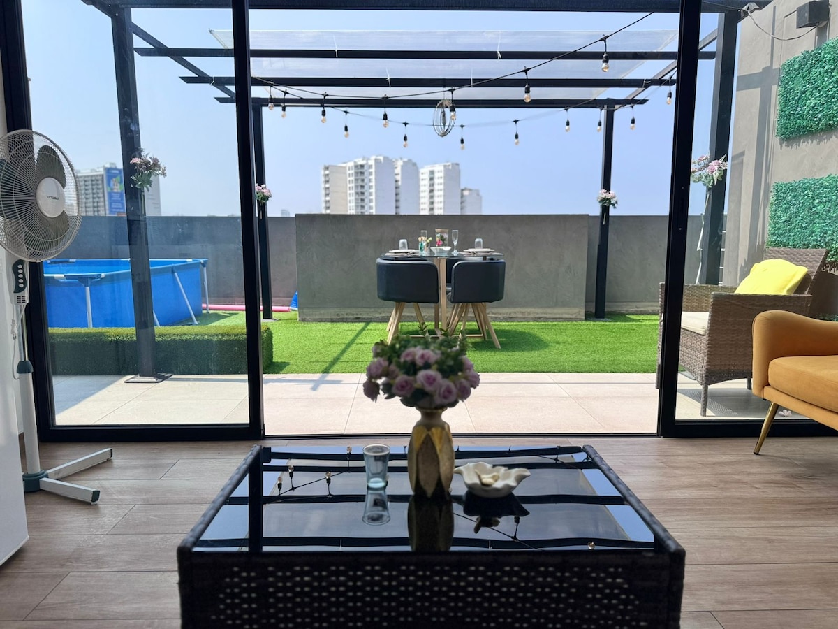 Tranquil penthouse- pool & bbq in safe Monterrico