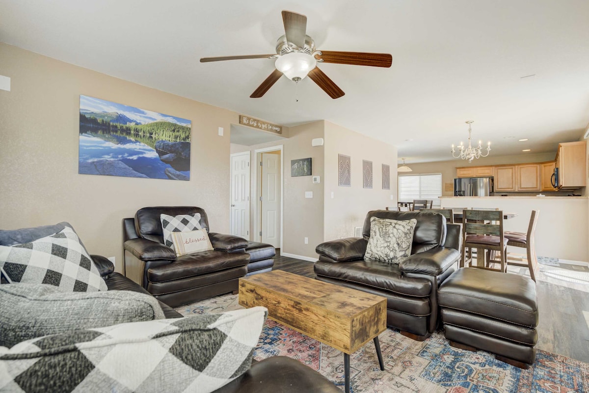 Twoja rodzina będzie blisko wszystkiego, gdy zatrzymasz się w tym centralnie położonym domu w cudownej okolicy z przepięknymi widokami na Pikes Peak i cały wschodni front Gór Skalistych! Nowo umeblowany, ciepły, przytulny z 3-stronnym kominkiem gazowym, 3 sypialnie (wszystkie łóżka typu queen). Zupełnie nowa pralka i suszarka. Ogrzewanie/klimatyzacja Nest. Łóżka z pianki termoplastycznej. Rozkładana sofa. Smart TV. System Keurig. Dodaliśmy również grill gazowy, stół do ping-ponga i wiklinowe meble z przodu i z tyłu. Domowa wygoda!