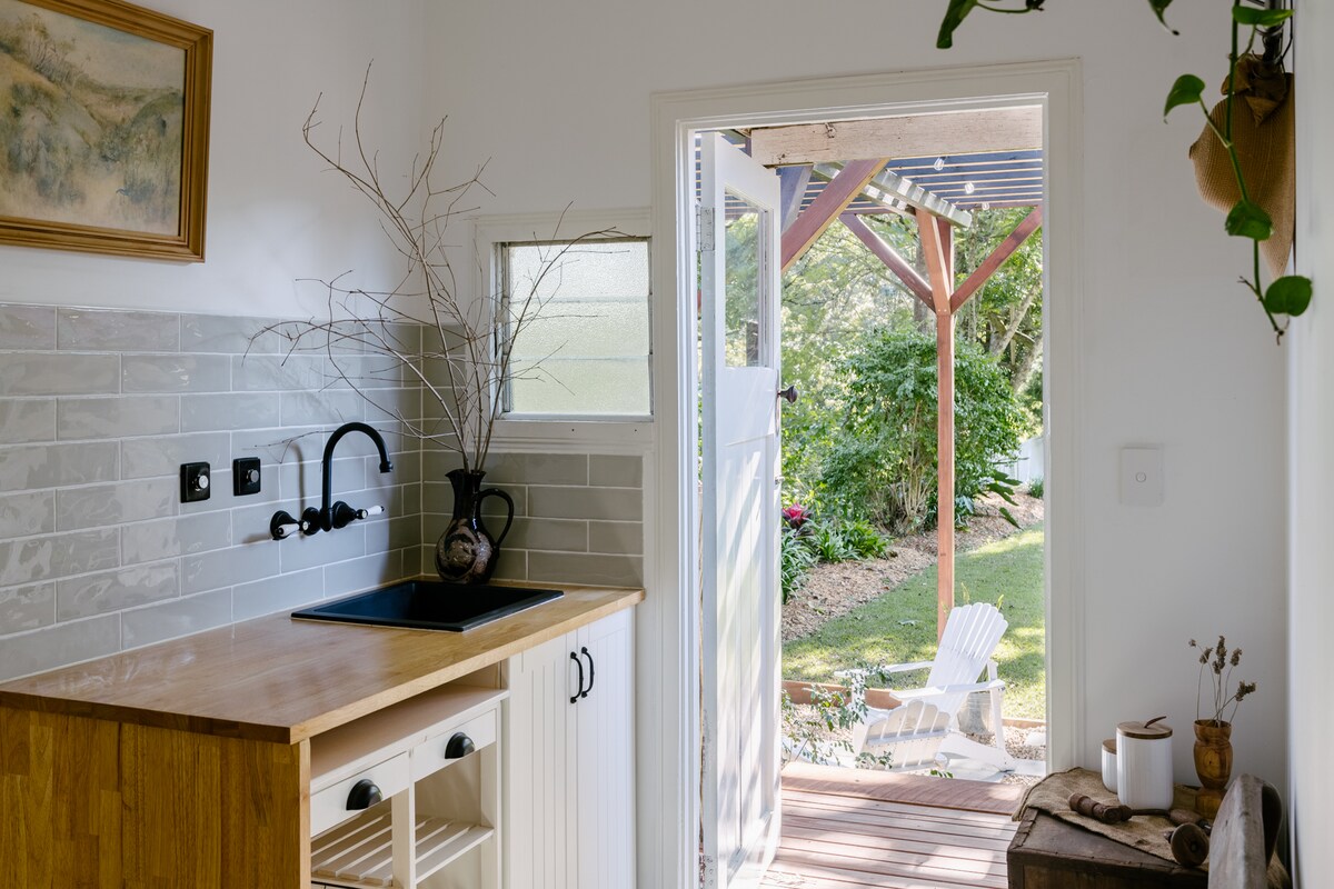 Zanurz się w prywatnej łaźni i saunie lub zrelaksuj się przy kominku na świeżym powietrzu, opiekając pianki, gdy słońce zachodzi w dolinie. Zakwaterowanie to uroczy domek w stylu gospodarstwa rolnego na 11,5 akrach na drzwiach Springbrook. Starannie odrestaurowany domek z dwiema sypialniami to Twój dom z dala od domu, otoczony wysokimi jedwabistymi dębami i rodzimymi lasami. Ciesz się i spraw sobie przyjemność podczas wypoczynku dla par lub rodzin, przygotuj się na ślub lub wędrówkę po lesie deszczowym.