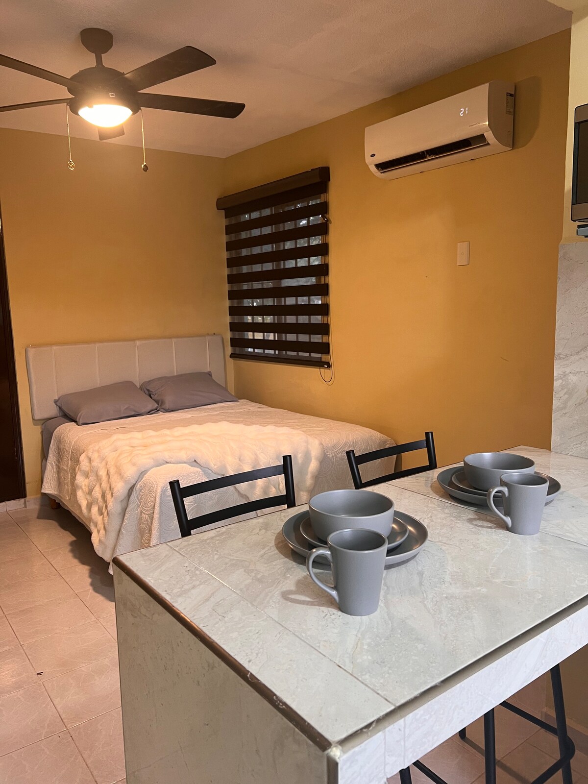 Przytulny apartament z podwójnym łóżkiem, prywatną łazienką z prysznicem, klimatyzacją i wentylatorem. Obejmuje Wi-Fi, telewizor z usługami przesyłania strumieniowego, lodówkę i podstawowe dania do jedzenia. Idealne na krótkie lub służbowe pobyty Woda, prąd i internet wliczone w cenę, dzięki czemu możesz cieszyć się pobytem bez obaw. Wygodna, funkcjonalna i dobrze położona przestrzeń. 10 minut od laguny stolarza i centrum wystawowego, 20 minut od centrum Tampico i 30 minut do plaży. Facturamos